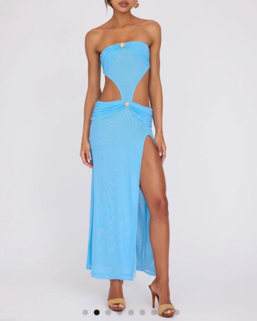 Beautiful blue dress with cut outs and gold accents