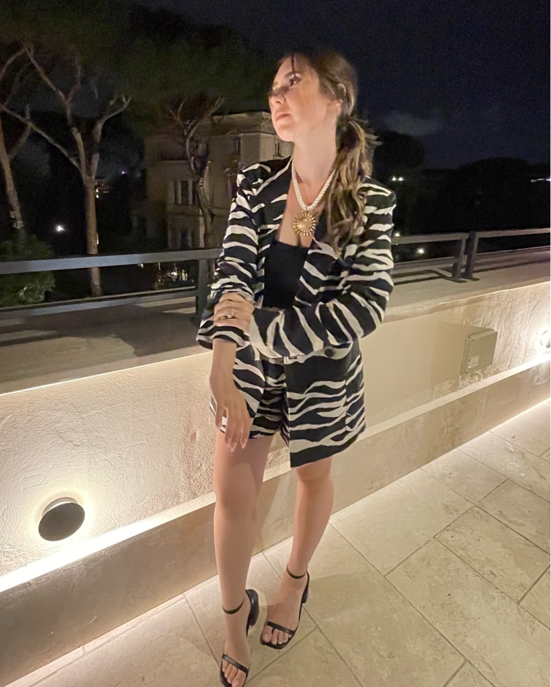 The perfect elevated Summer suit set. Black and camel zebra colored. Jacket is an xs and shorts are an s. Elastic waist band