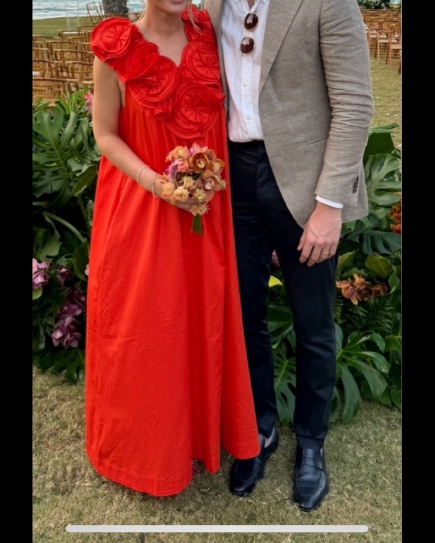 Mara Hoffman Bindi ruffled organic cotton-sateen maxi dress. Gorgeous statement dress, got so many compliments. Wore once as bridesmaid. Size small fits like a medium. I’m 5’7 and usually size 6.