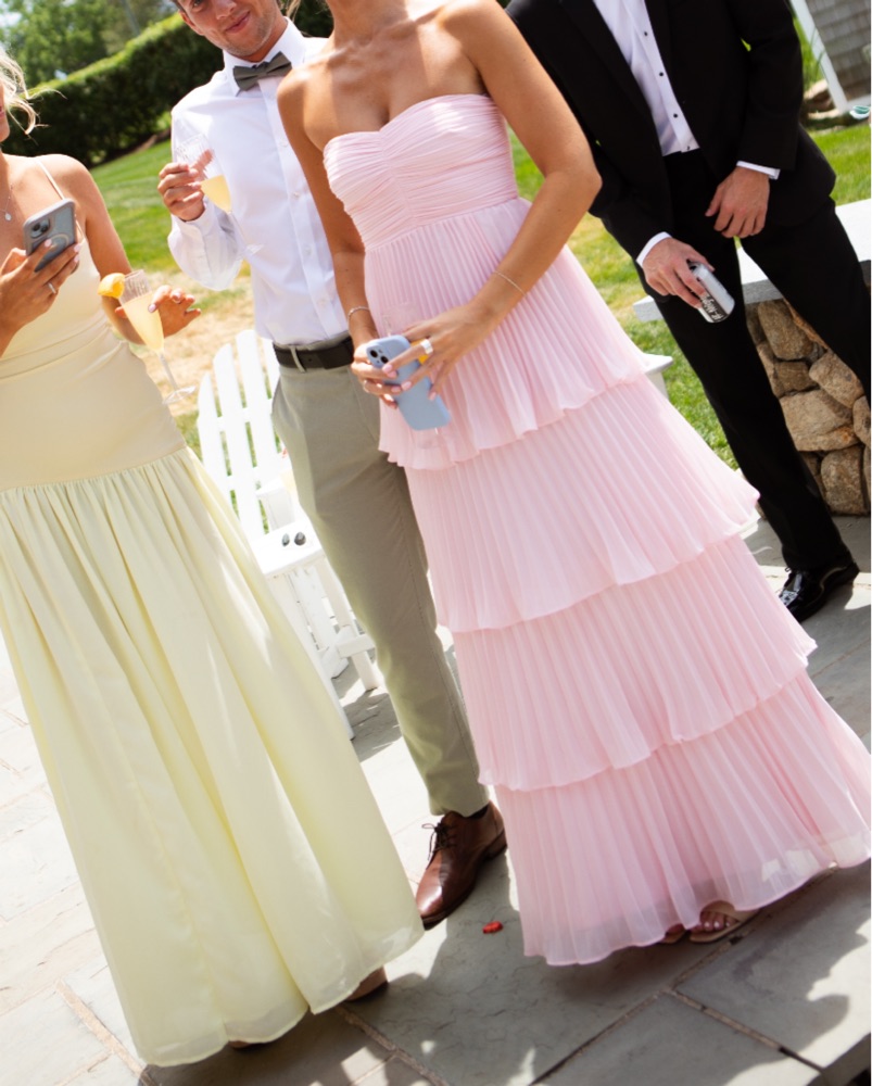 Lulus Pink Strapless Tiered Maxi Dress. Perfect for summer weddings or bridesmaid dress. Top doesn’t fall down, very flattering 🌸