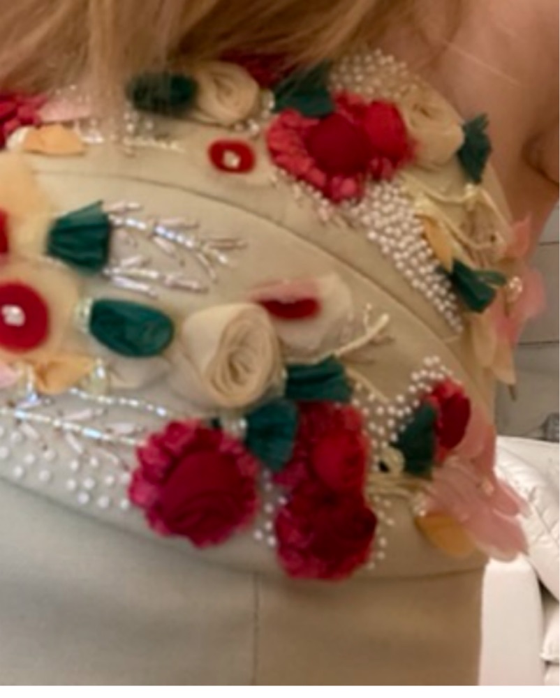 Gorgeous beaded top, zipper closure on side. Please handle with care, delicate! I’m a 32 C and this fits great with no bra.