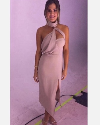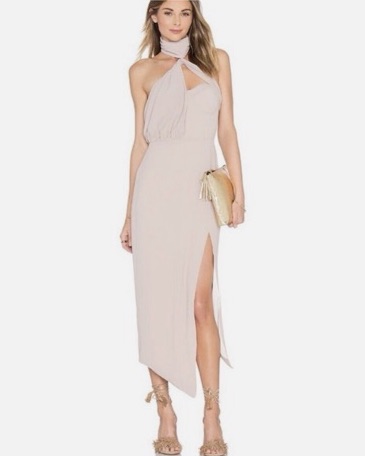 Misha Collection Trivata Dress Split Asymmetric Hemline Drape Mousse Nude size 4
