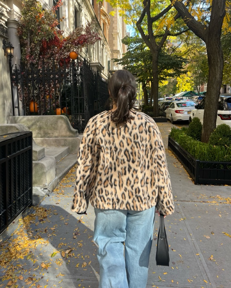 This stylish leopard print coat is perfect for elevating any outfit. Wear it to the office, out for drinks, or on a weekend adventure.