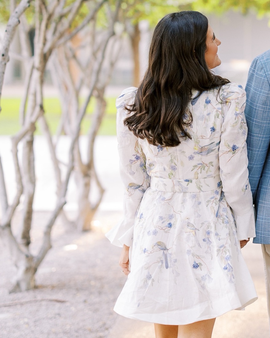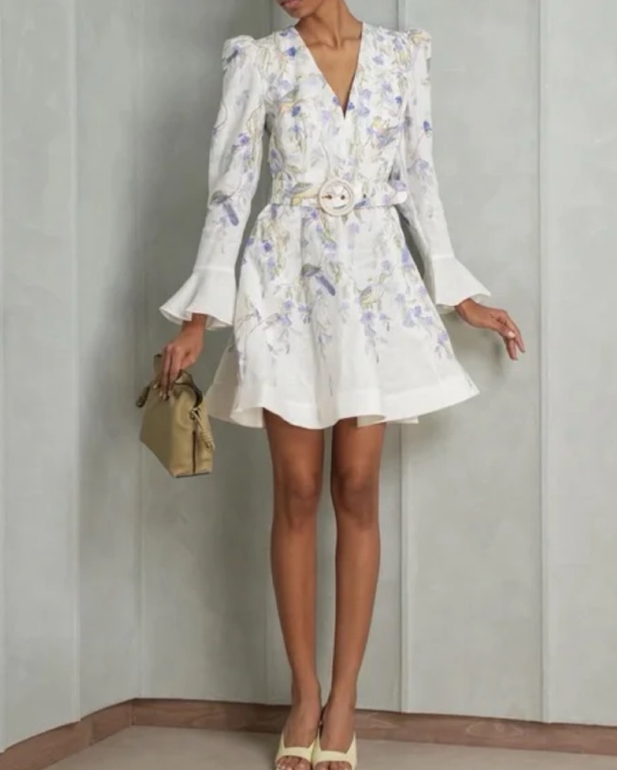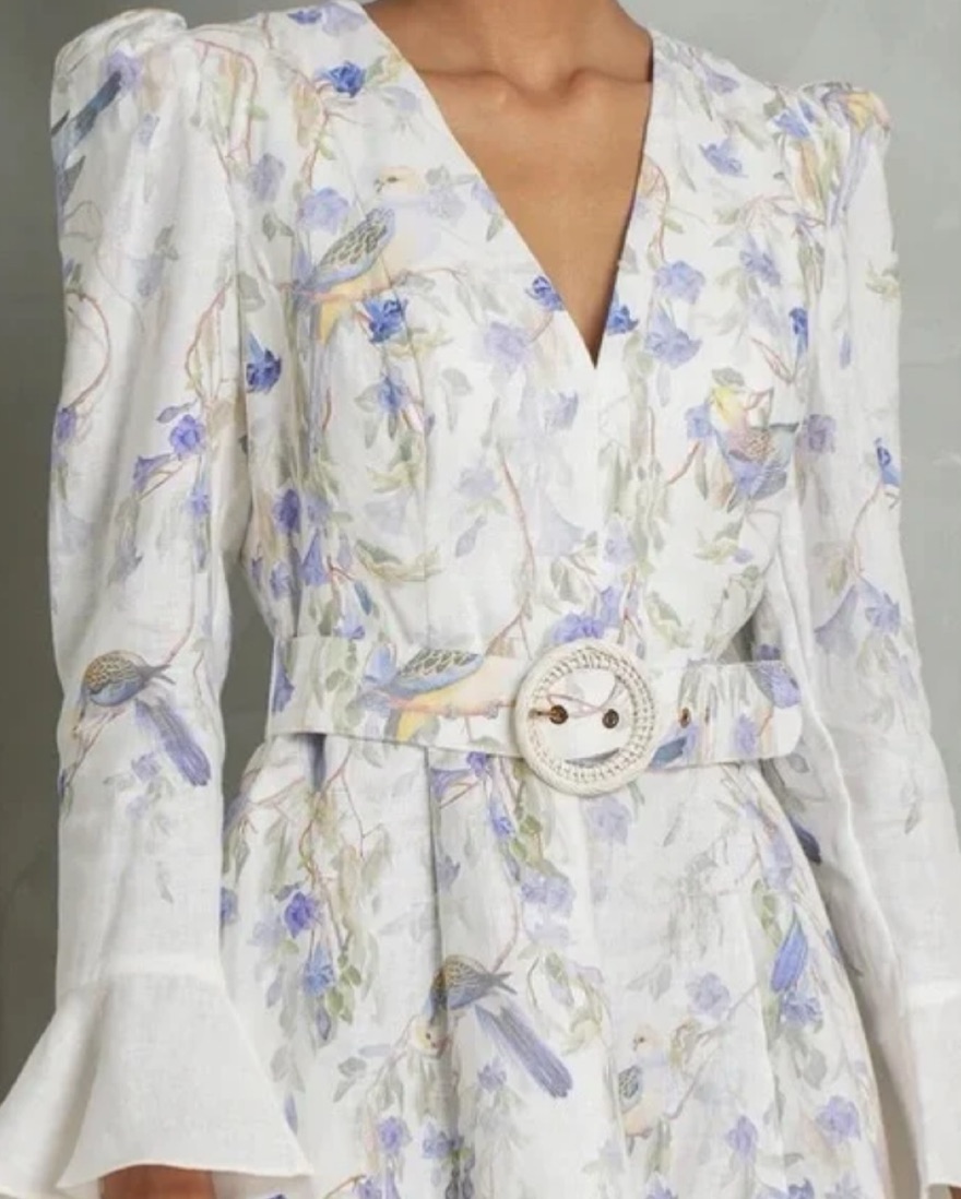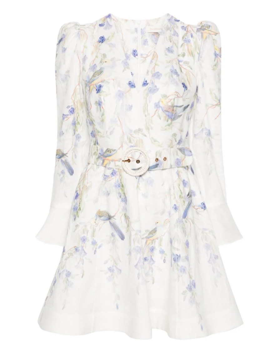 Zimmermann Natura Linen Floral Belted Minidress in Blue Birds pattern. Worn once for engagement photos!