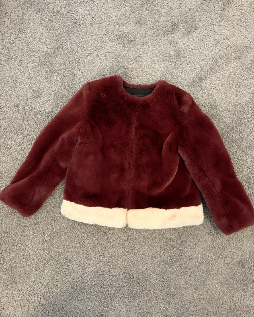 In like new condition! Chunky faux fur jacket flaunts a contrasting trim and versatile rib-knit cuffs.