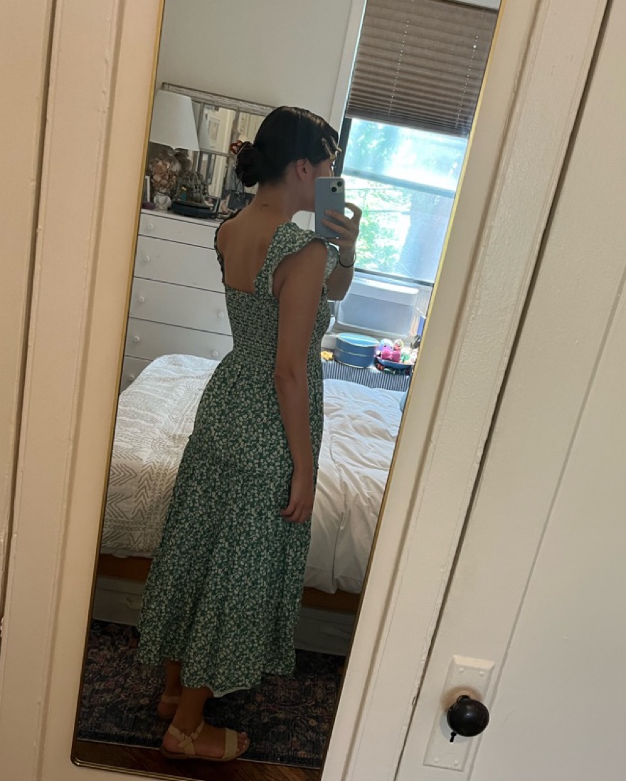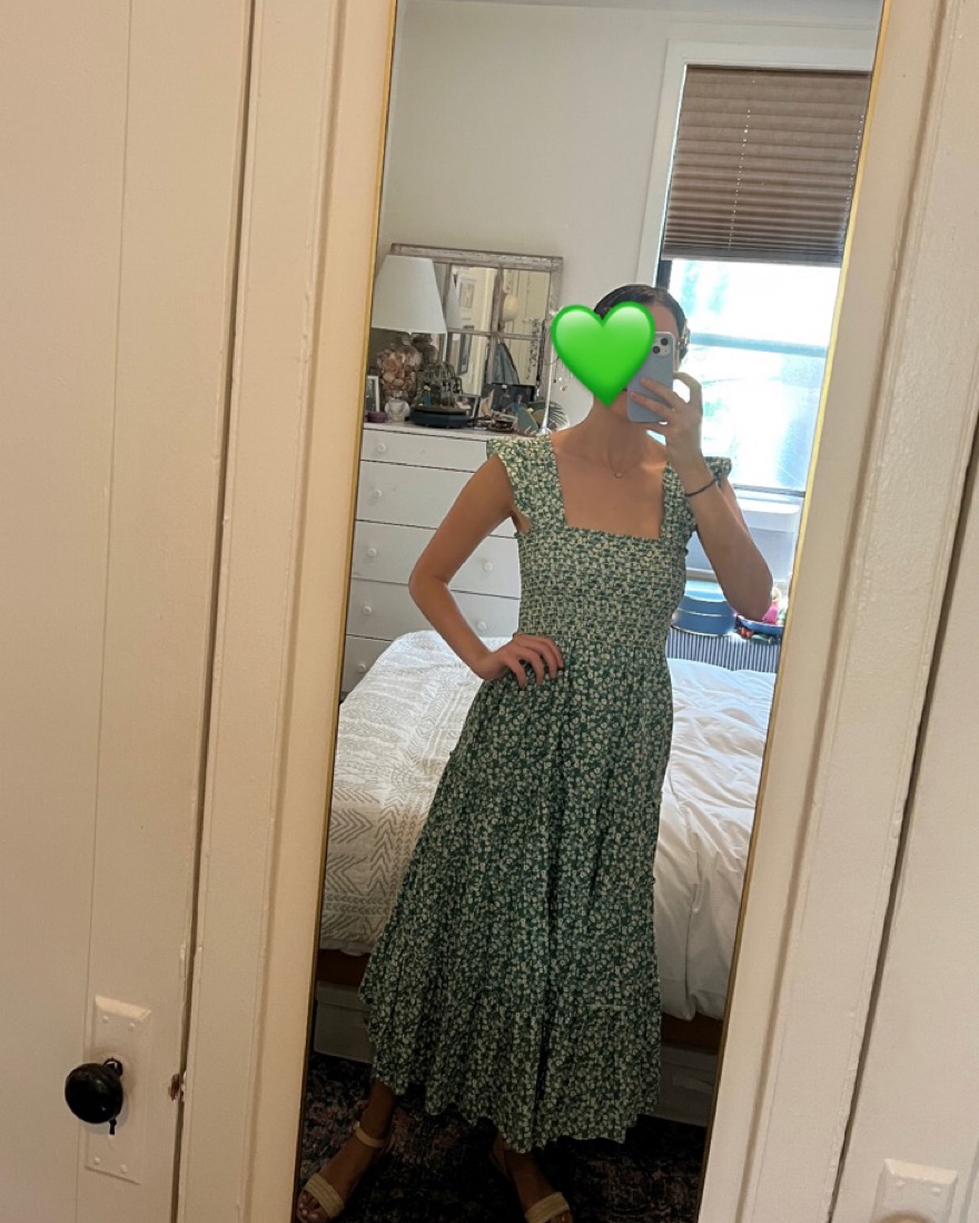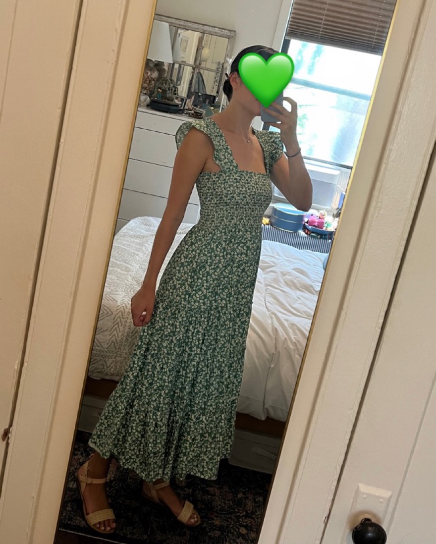 Aqua Calypso Tiered Smocked Dress in green with white floral print. I love this sundress, has been worn a few times and is in perfect condition ✨