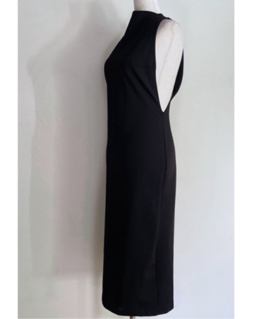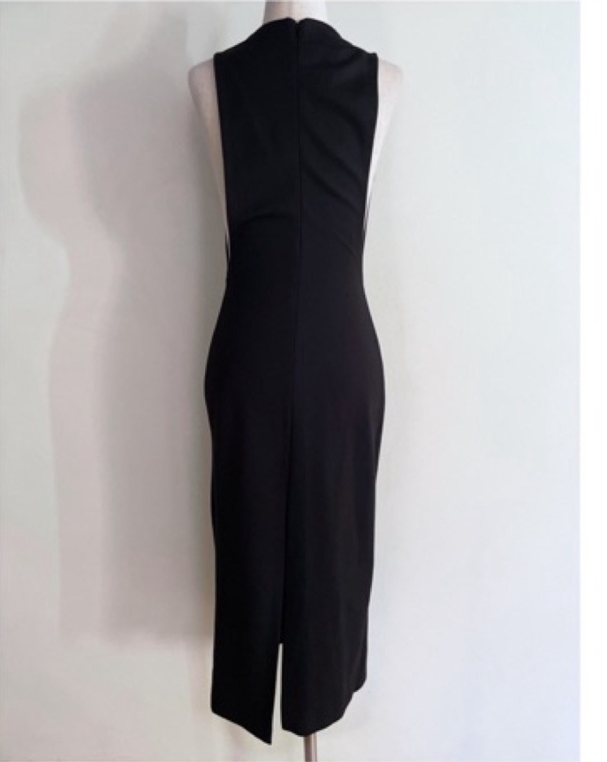 Size 2, low cut out side, black body fitting midi dress