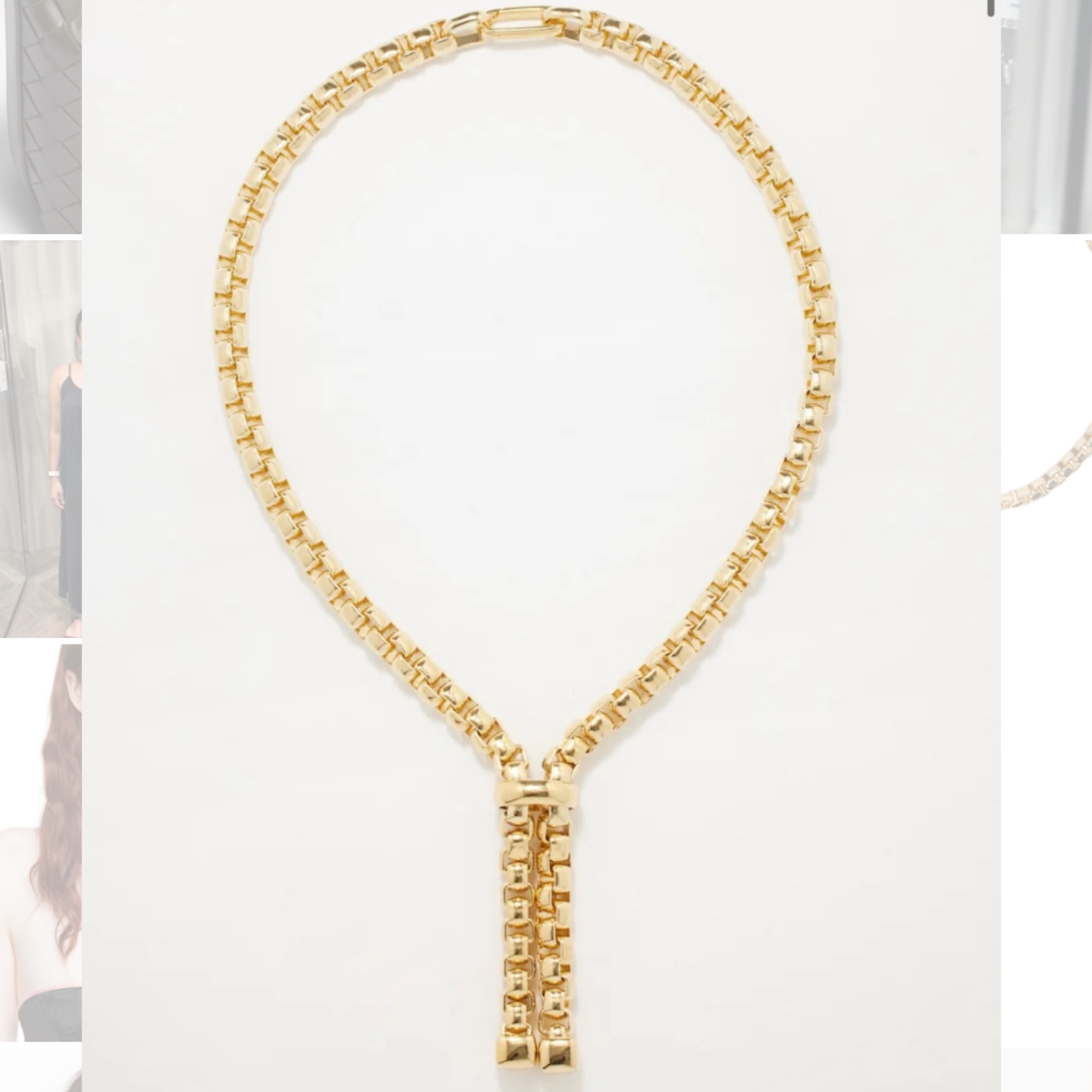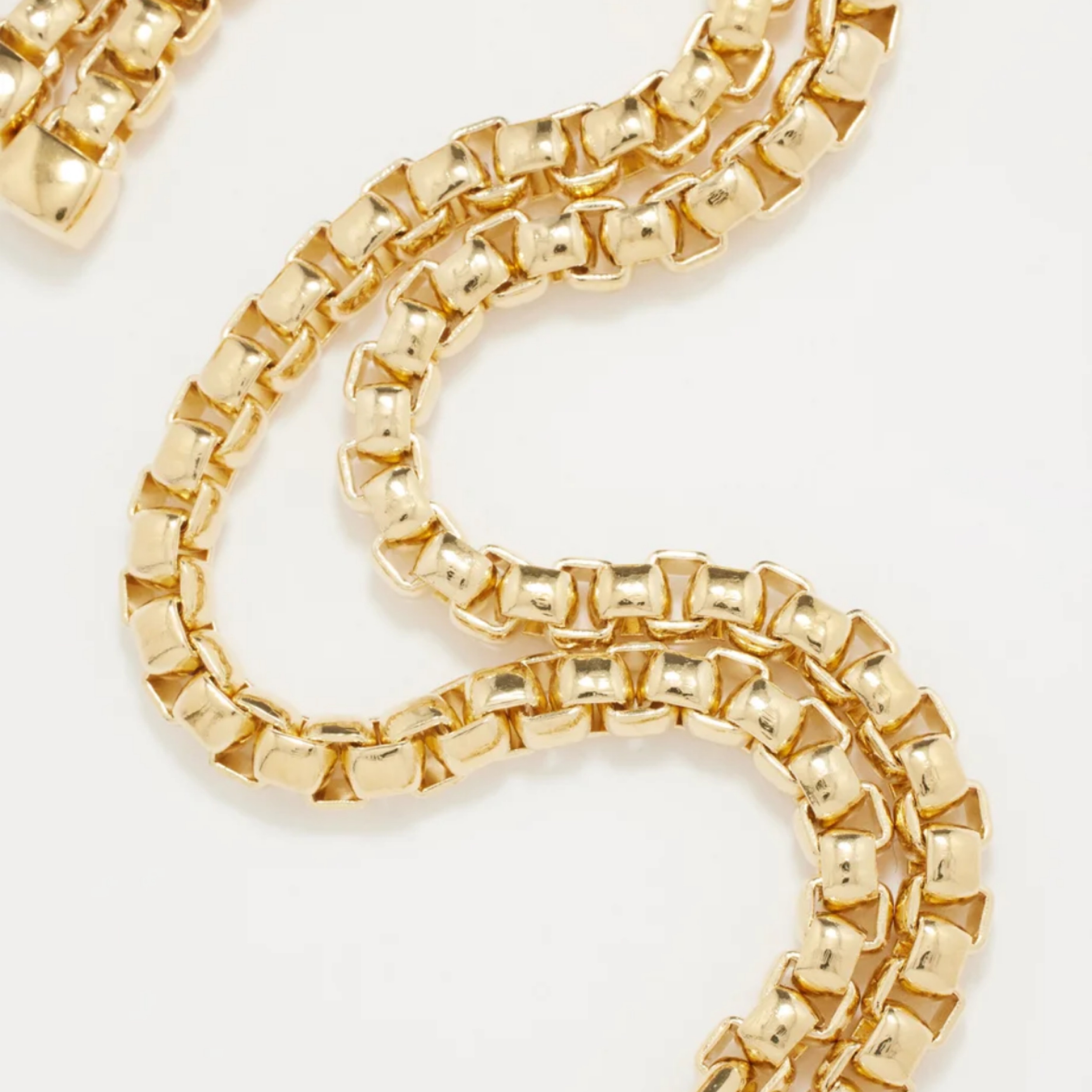 Gold, 14kt gold-plated brass, Oversized box chain Hinge clasp Oval-shaped clasp Chain length 15.9in/40.5cm Chain width 0.2in/0.6cm