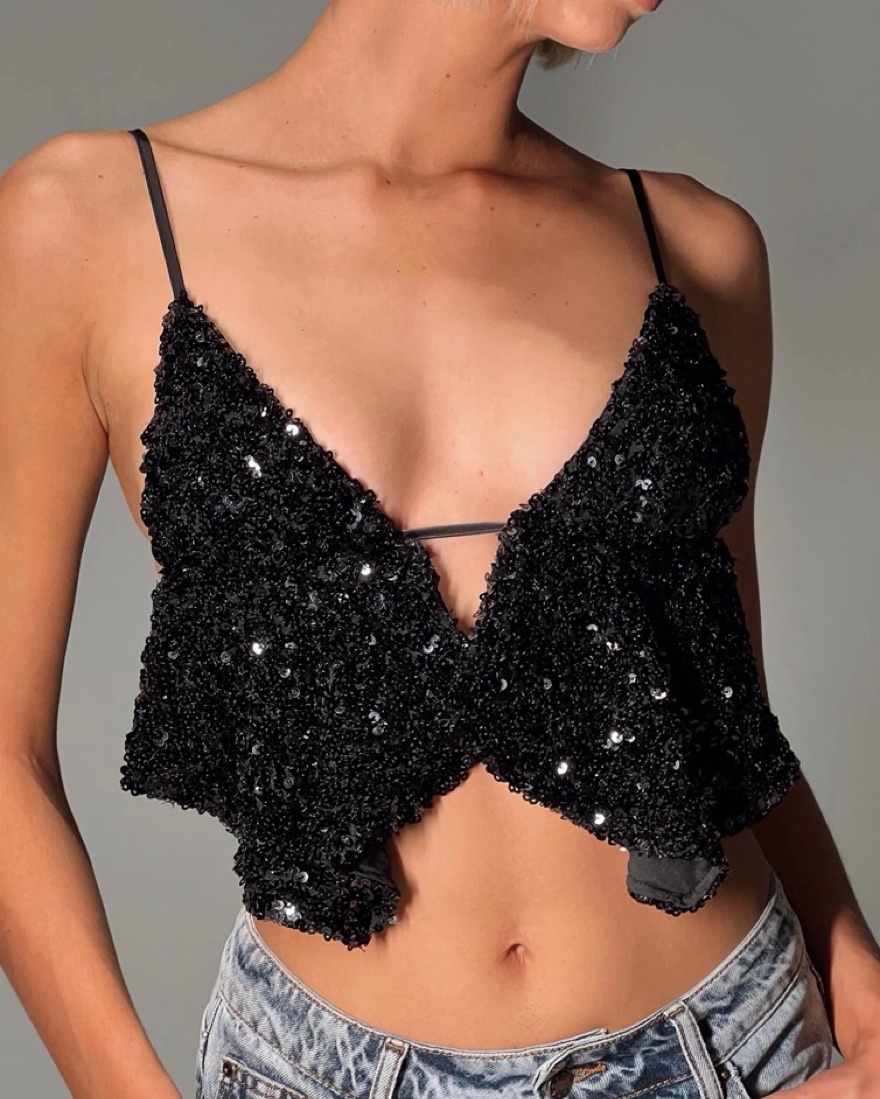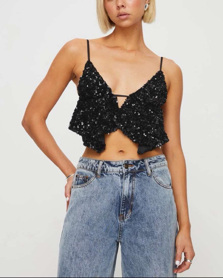 Princess Polly Black Sequin Top