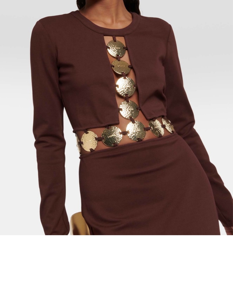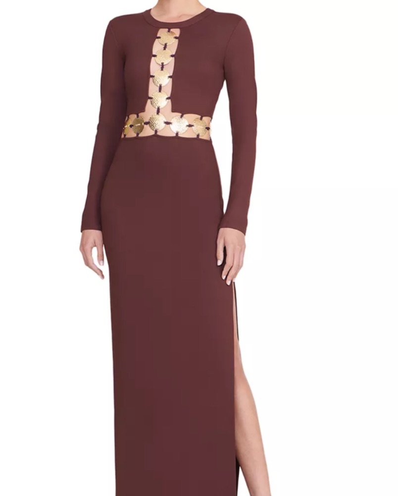 Beautiful long sleeve gown in brown with gold details. Great for black tie wedding. Only worn once.