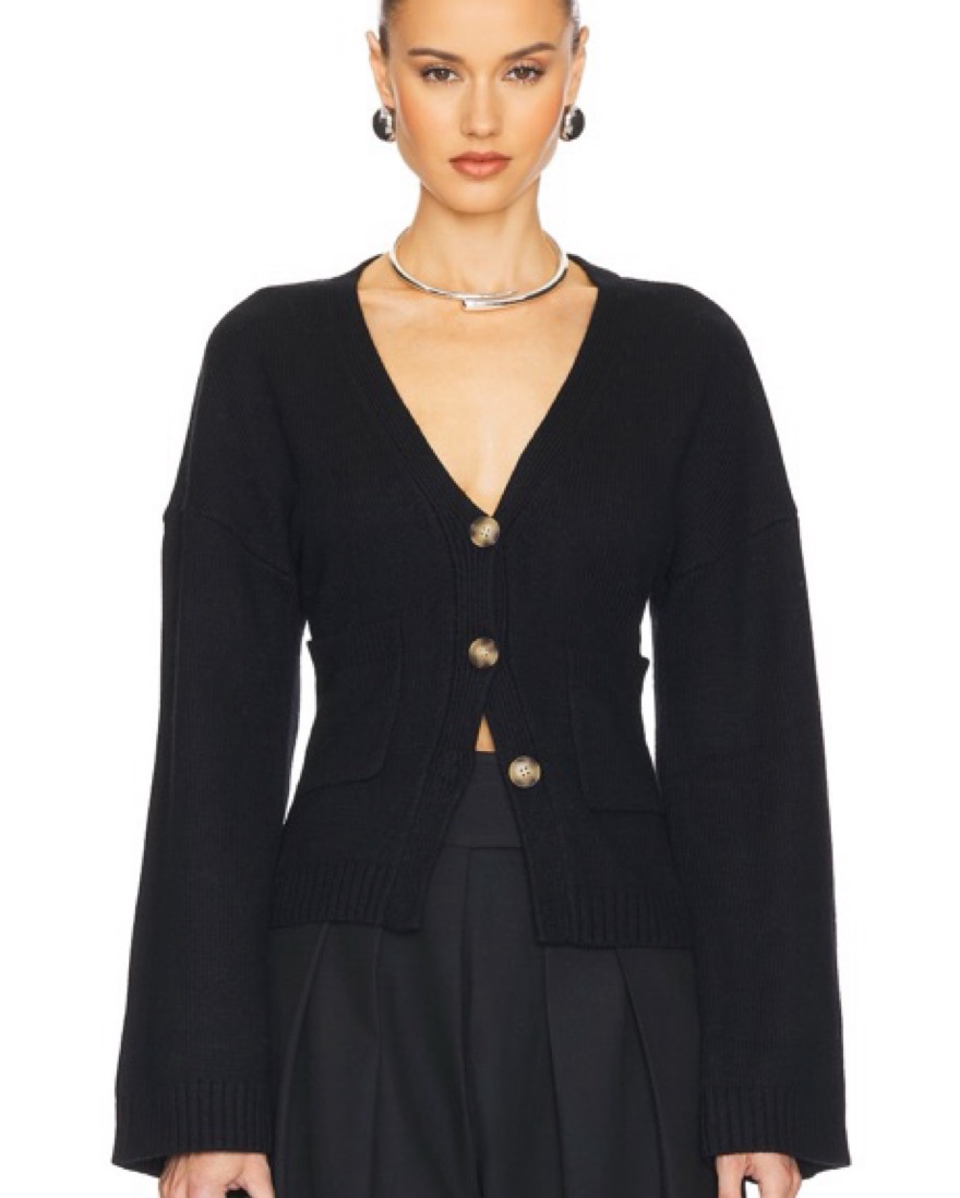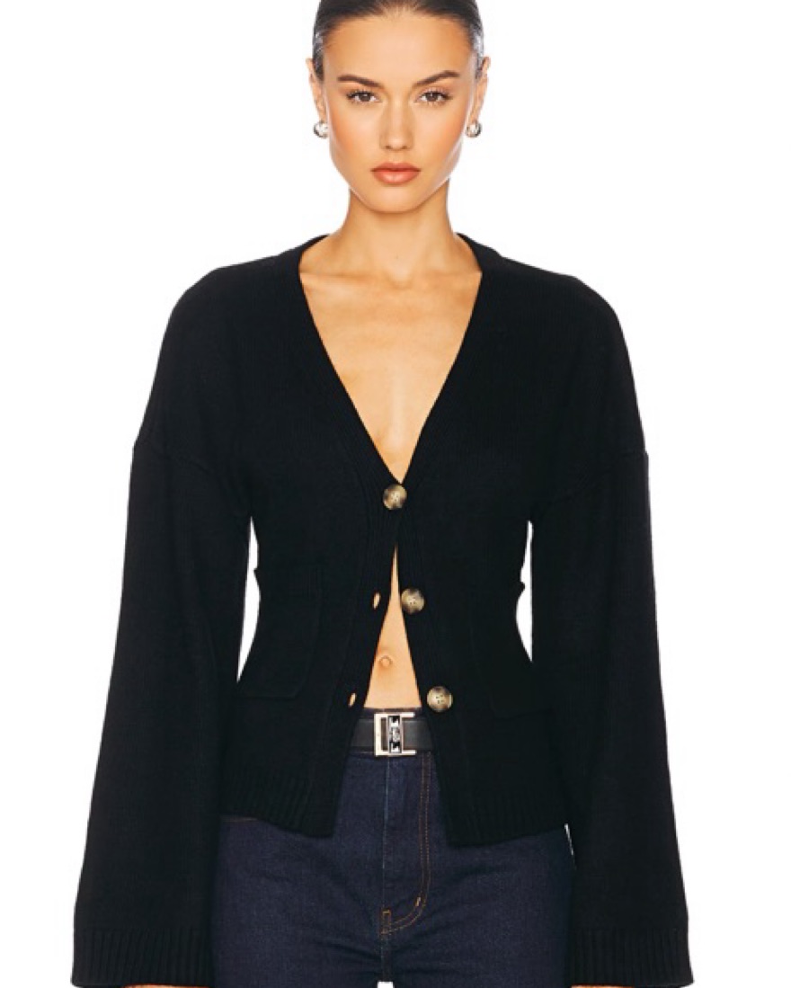 Iconic sanna cardigan by Helsa in black. The perfect sweater! So comfortable & flattering on!