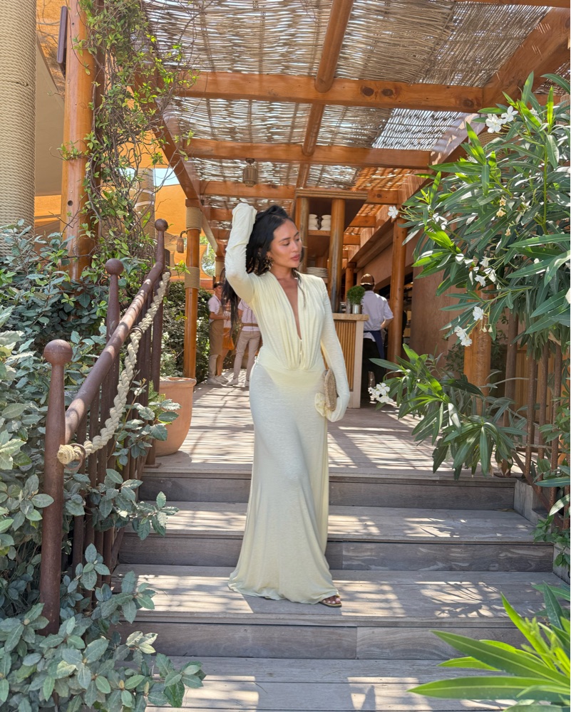 She’s cozy and drapes the body so well. Dress is Long so please be carful when walking 💛