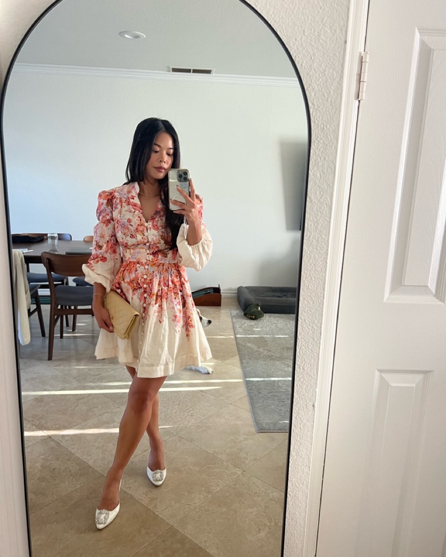 Zimmermann Devi Floral Plunge Mini Dress by Zimmermann - Pickle