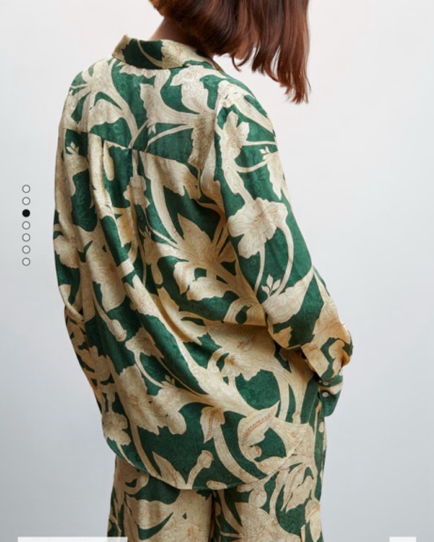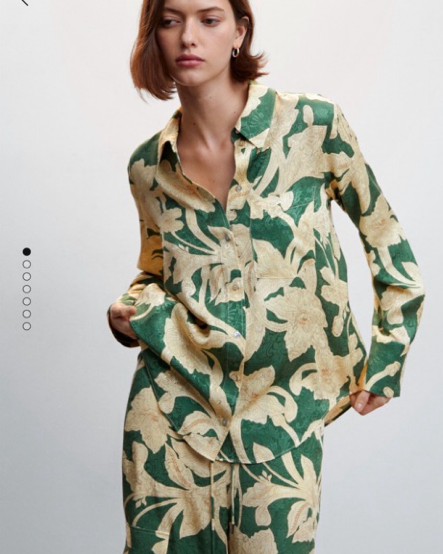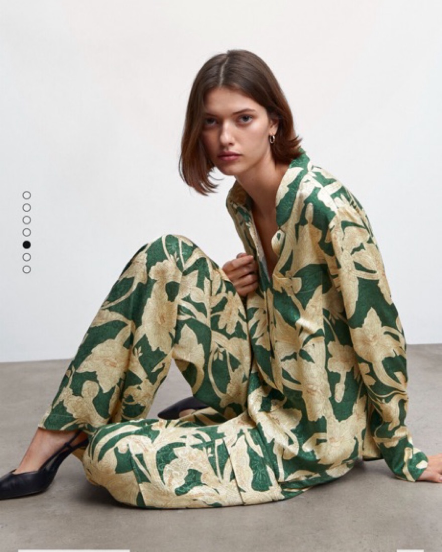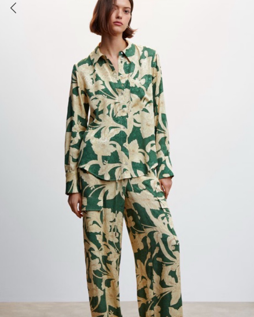 Mango Floral print pant and top matching set. Green cream and gold. Looks like Johanna Ortiz. Can be dressed up or down, perfect for vacation and summer. Size 4 in top and bottom. Equivalent to XS/S.