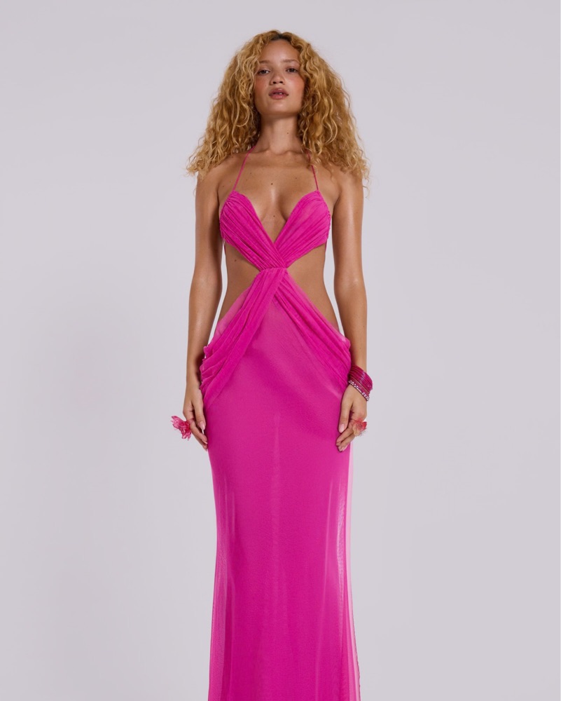 Beautiful fuchsia cut out backless maxi dress. Mesh material so slightly see through.