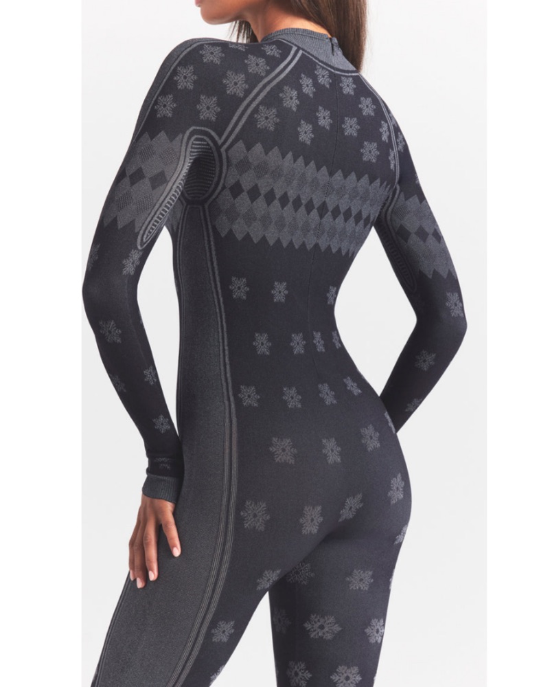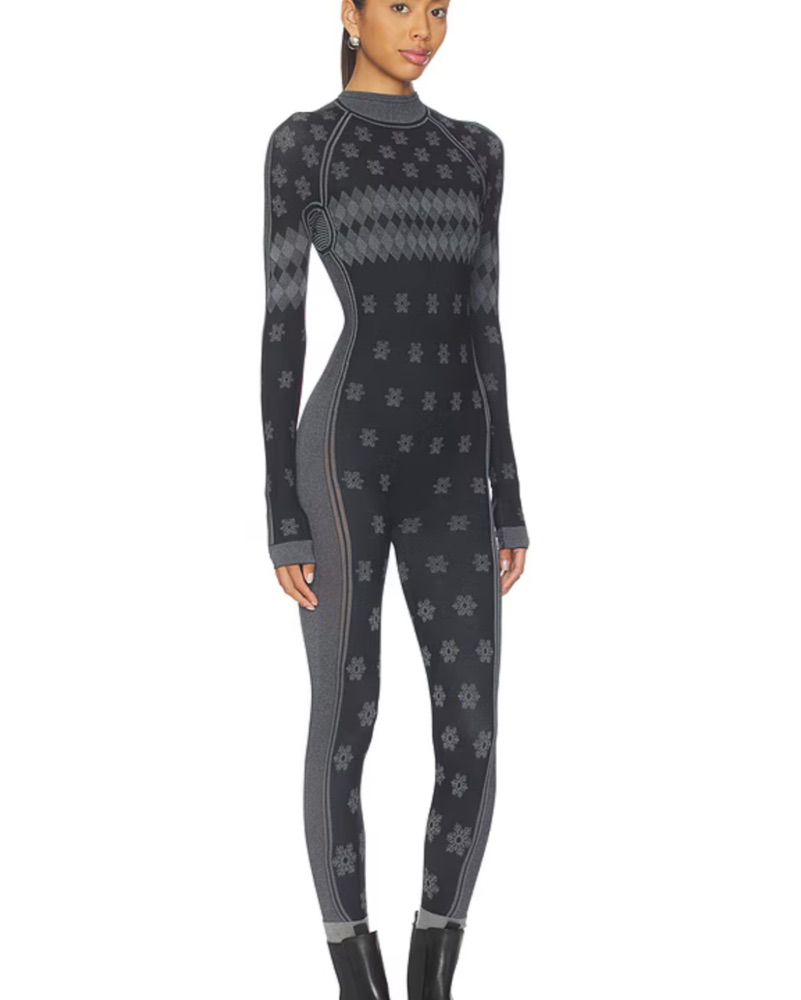 Skims first layers ski collection in obsidian winter fair isle. Size S/M can also wear it backwards to show cleavage as you can see in the pic of me trying it on