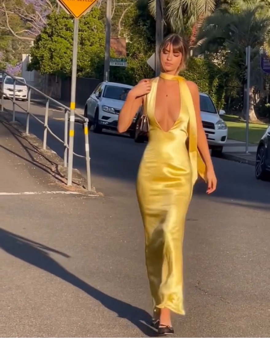 Introducing MARGOT, a mesmerizing maxi dress, designed for a summer evening affair. Featuring a plunging neckline, open-back and slight flare, she will flatter & fall gracefully over the body. Best styled with her detachable neck scarf. Double-lined from a luxurious silky satin, that glimmers in the
