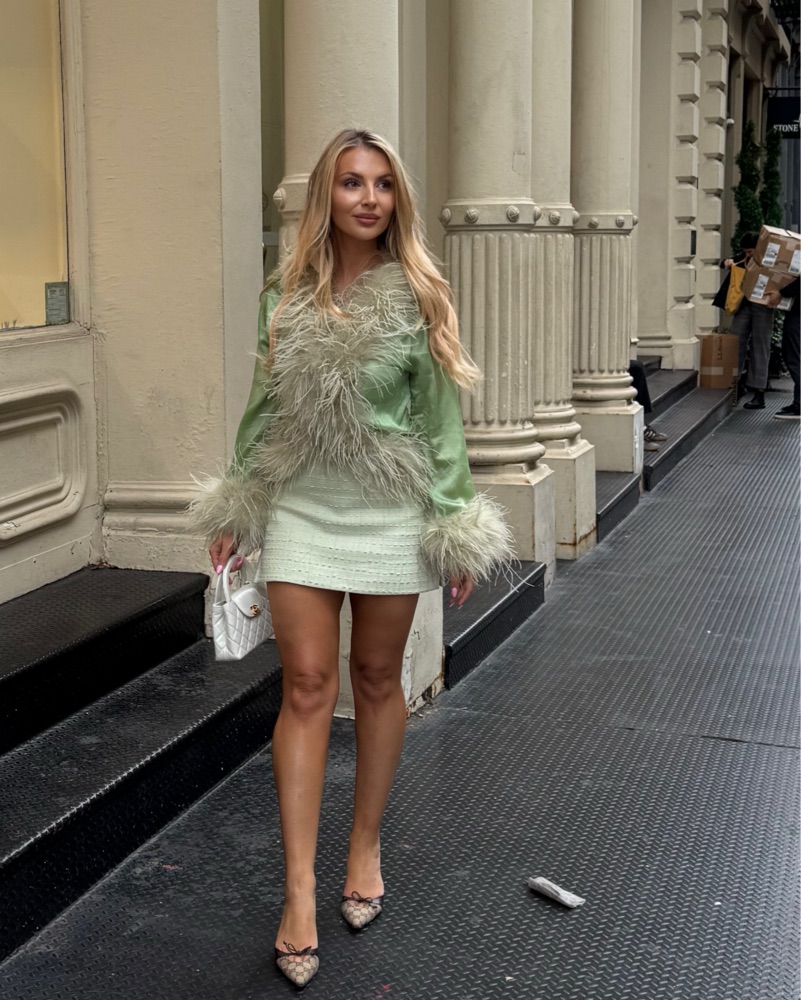 Bubish feather top size 2 and Amanda Uprichard skort size 4 in a pale green