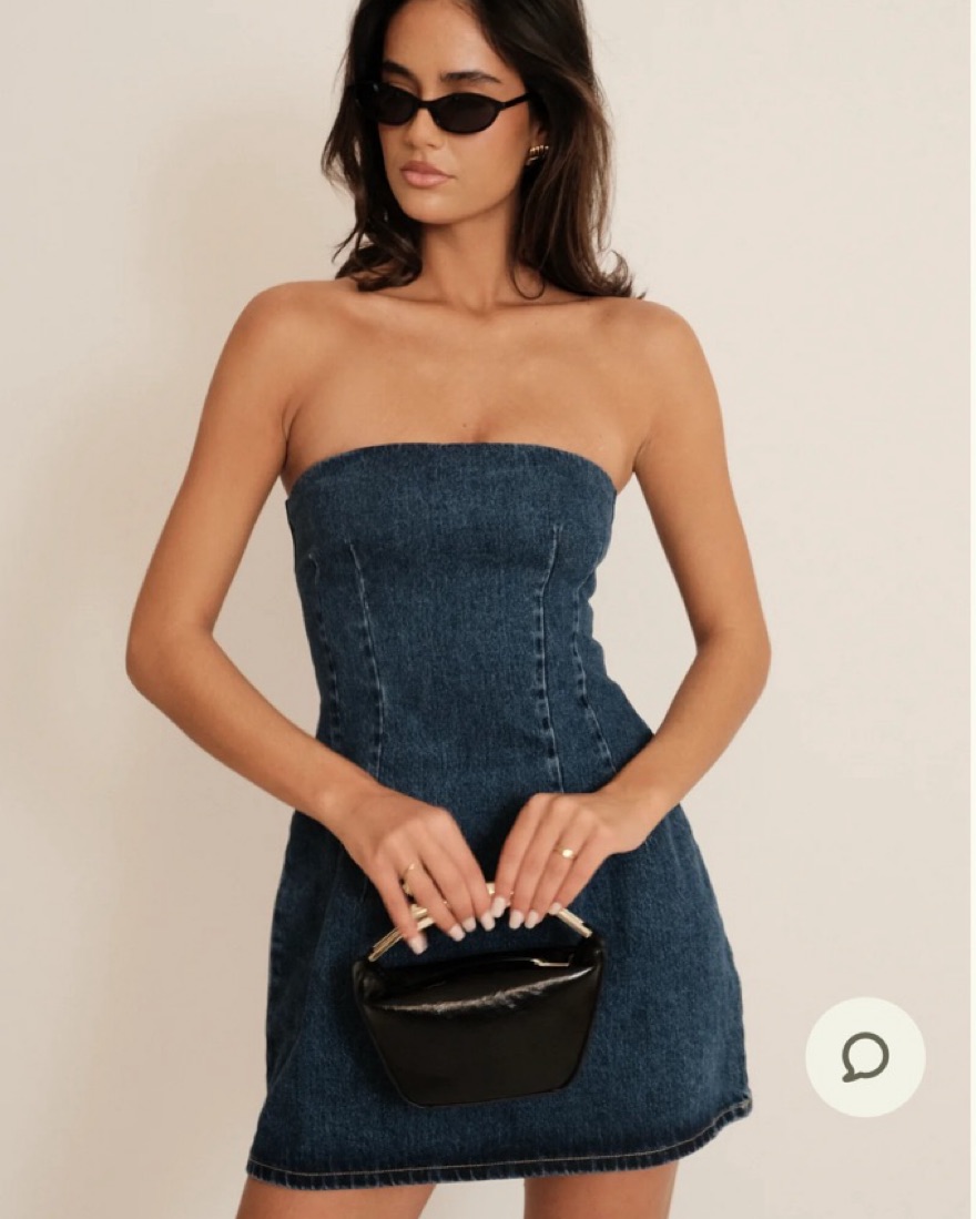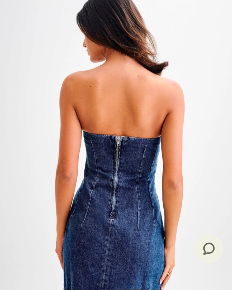 Strapless dress, worn once, tight around rib cage and then looser starting from your hips