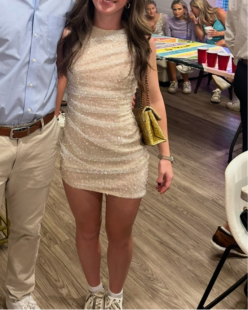 Obsessed with this dress, pictures to not do it justice. Good for the short girls too (5ft). Delicate