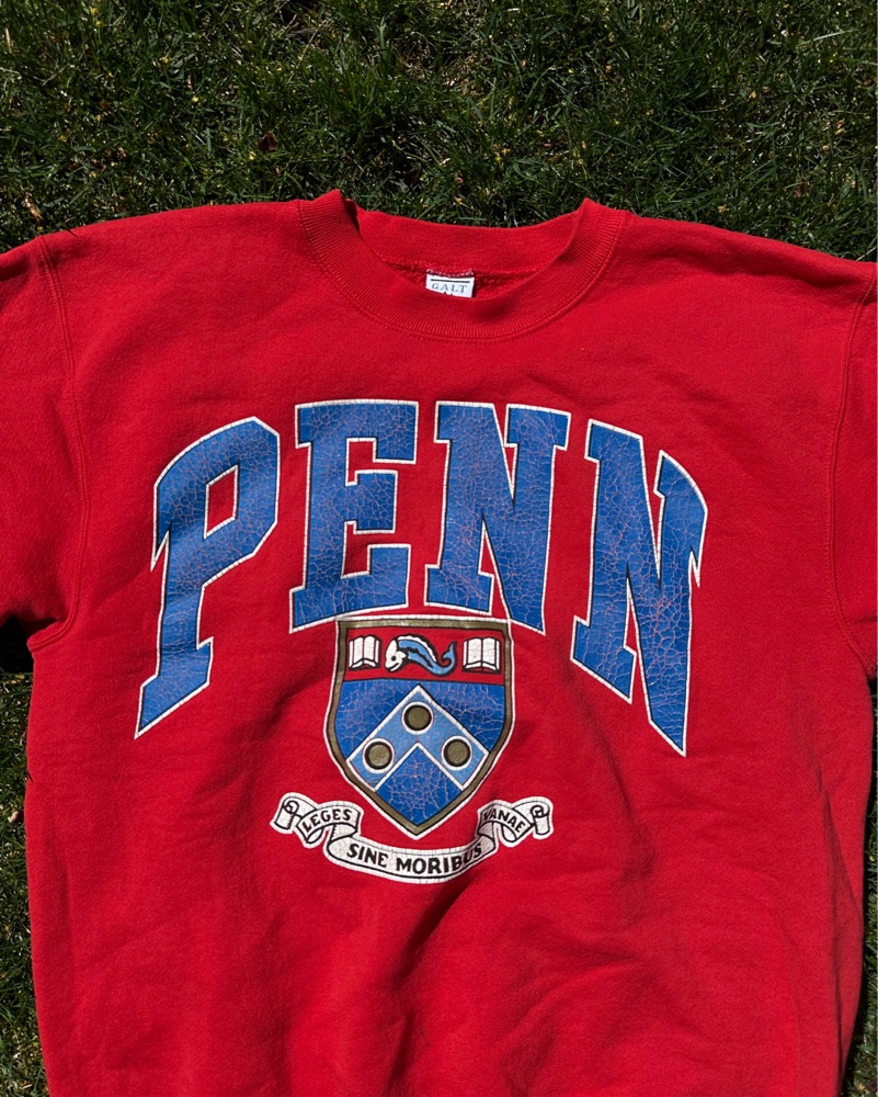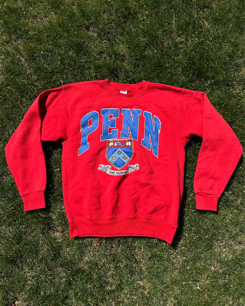 University of Pennsylvania red vintage crew, sourced by Tailgate Teens on IG. Whether you’re getting ready for an upcoming tailgate or looking to elevate your street style with a sick vintage piece, this is the perfect piece for you. Go Quakers!!!
