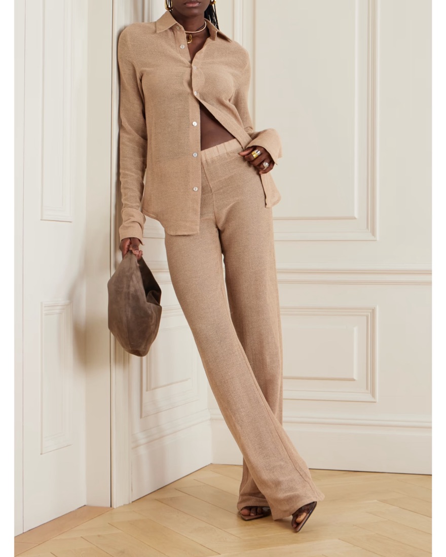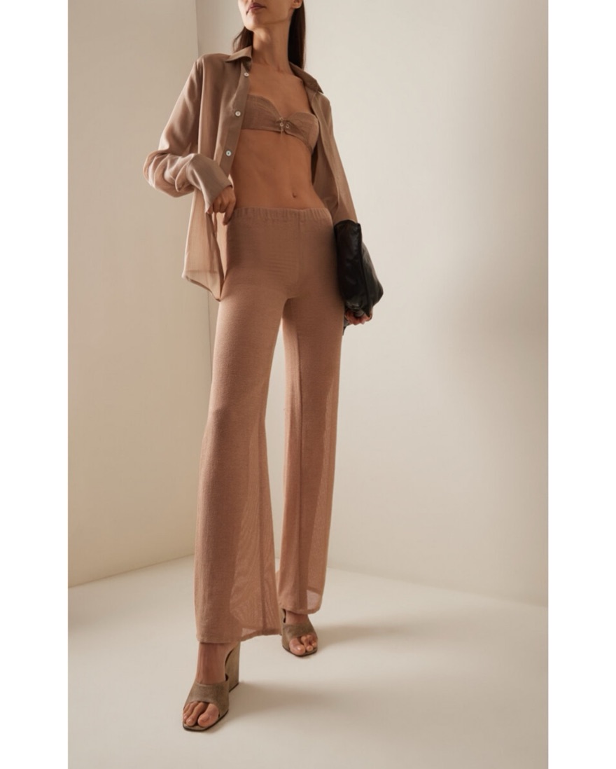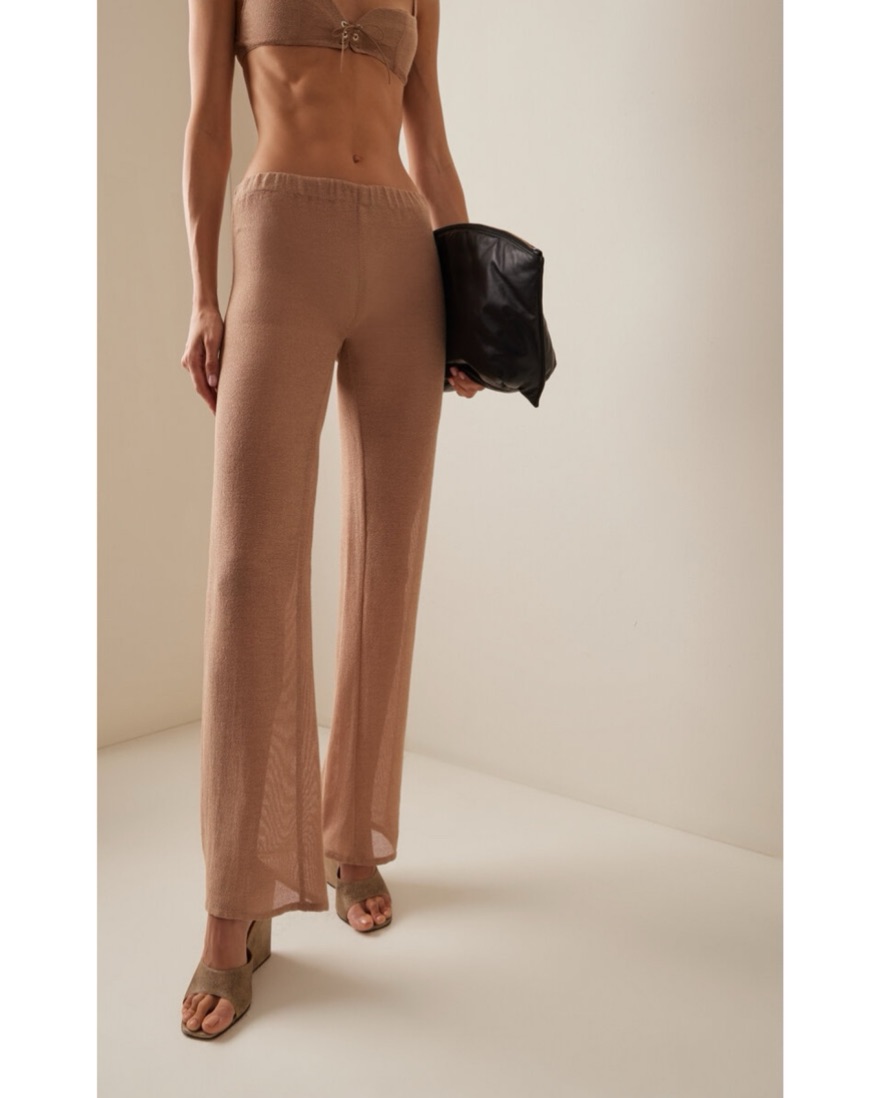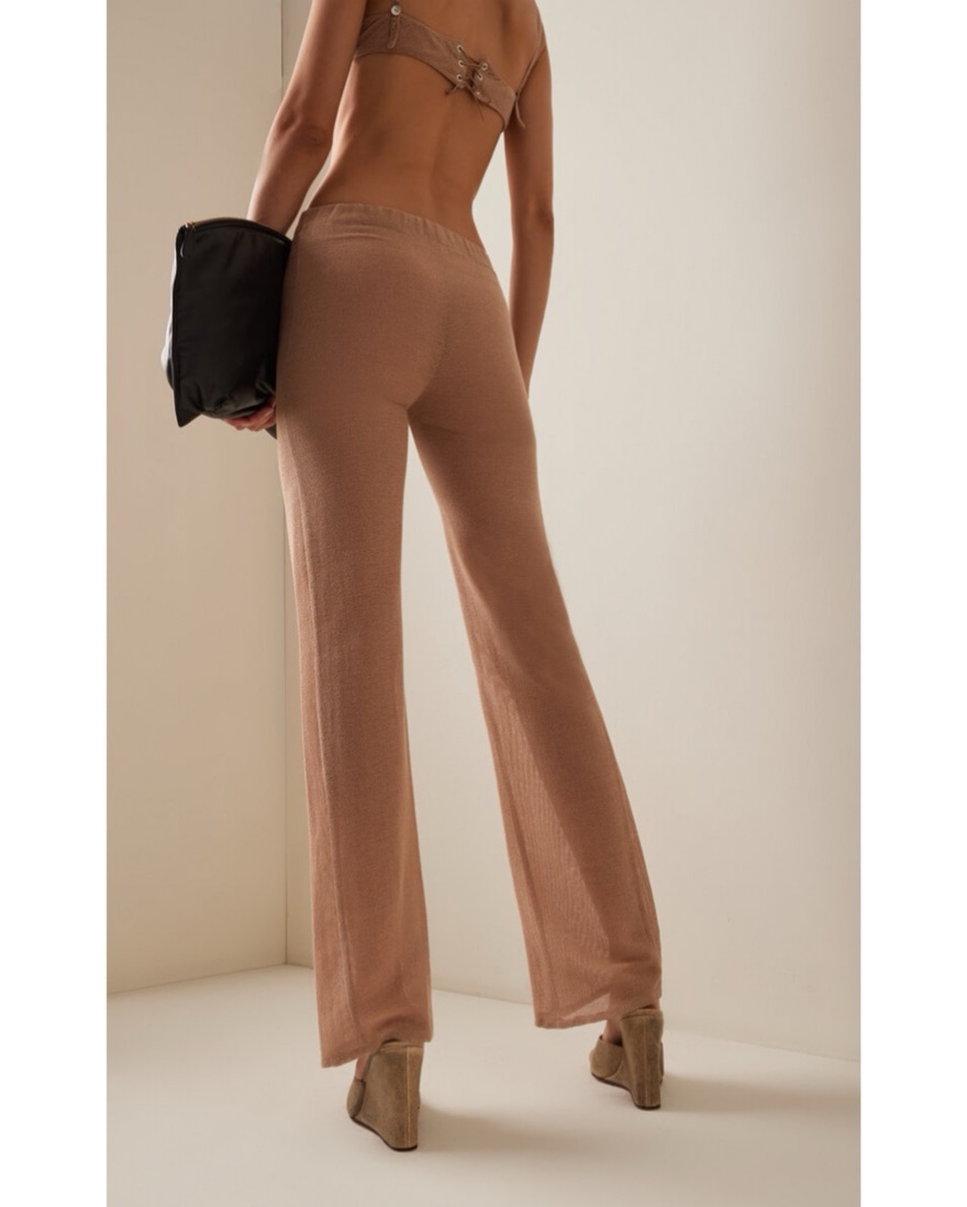 Ludovic de Saint Sernin's 'Mermaid' pants debuted at the Spring '24 show, which featured an array of muted shades and sultry designs. Knitted from cotton-blend in an open, airy construction, they have straight legs and a high, elasticated waist. Fit a 0-small 4 US.