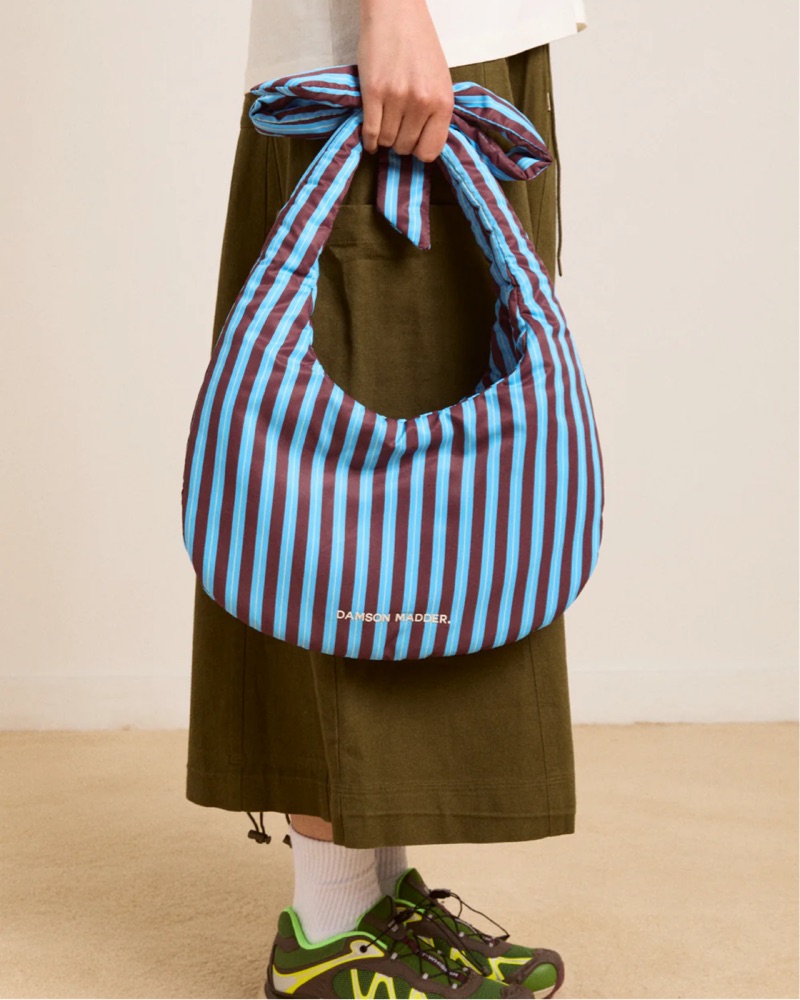 Perfect for everyday use or a day out with friends, with the bow accent adding a playful trendy touch. Puffer, bouncy blue & brown material with a zipper for protection. The inside is huge and can hold so much! Perfect lightweight summer bag - would be so good for the beach!!!👙