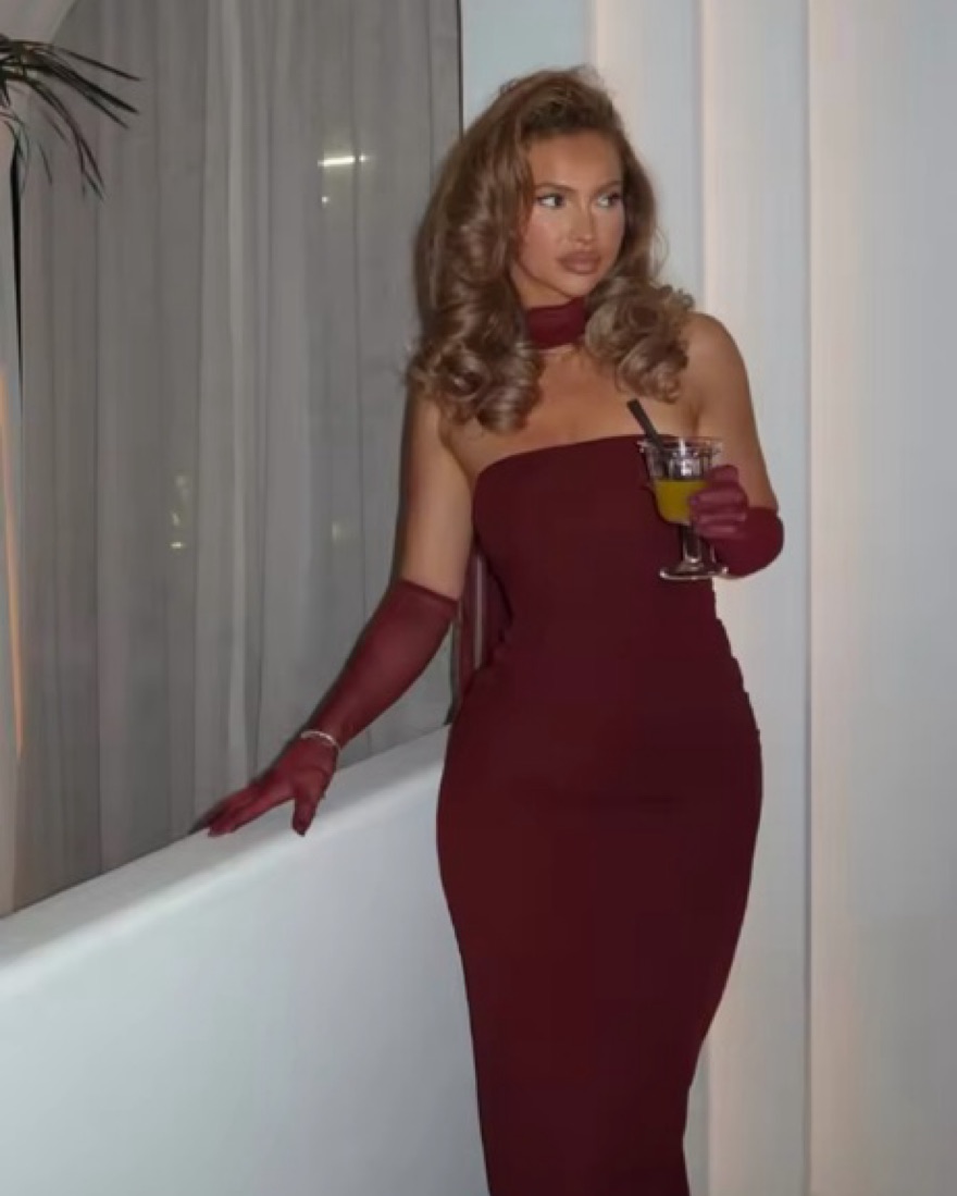 Strapless Red Dress with Scarf & Gloves