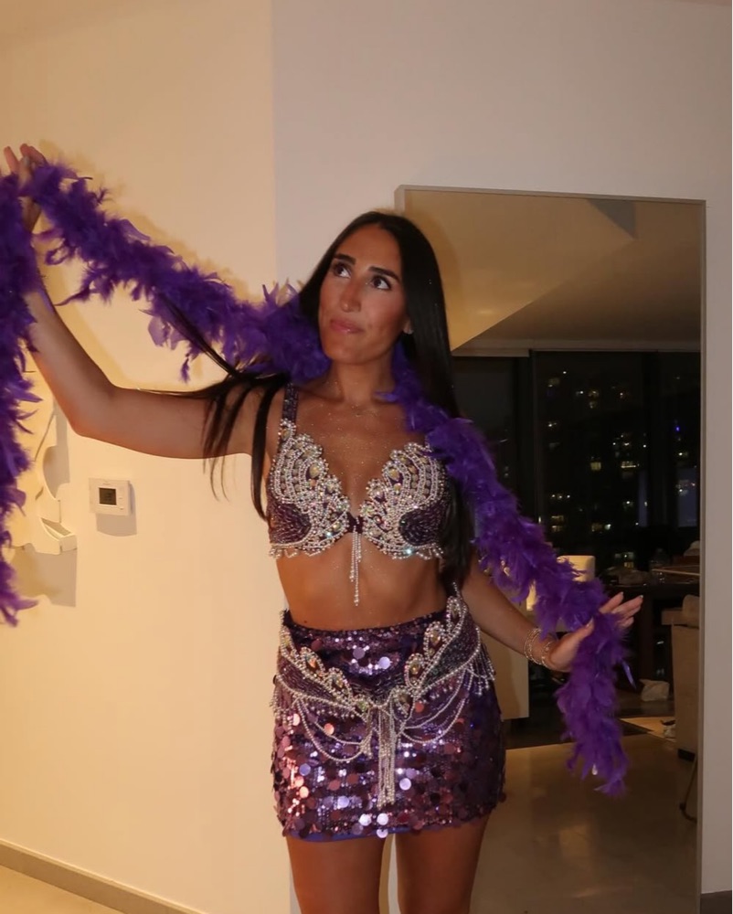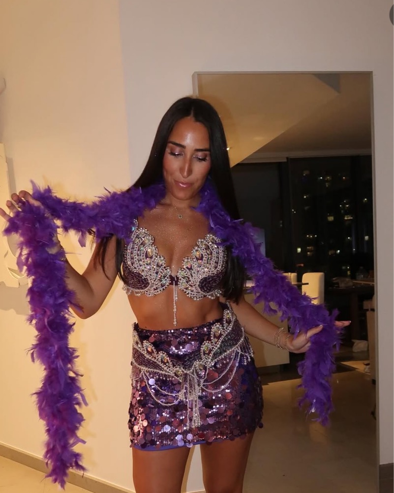 Includes Size S top/bra and bottom, + size S purple sequin skirt - perfect for Halloween! Located in Midtown Miami for pickup or delivery !
