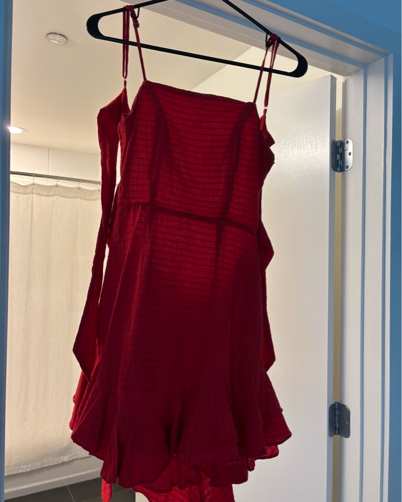 Really cute red mini dress with tie back. From Australian boutique, designer is “Angel Biba” . Australian size 8 fits like a US small