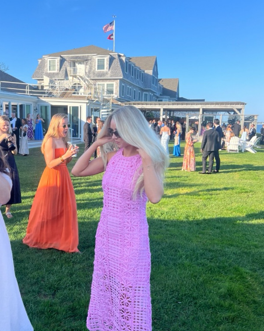Sleeveless textured midi dress in pink from anthropologie original price was $185 wore once to a wedding