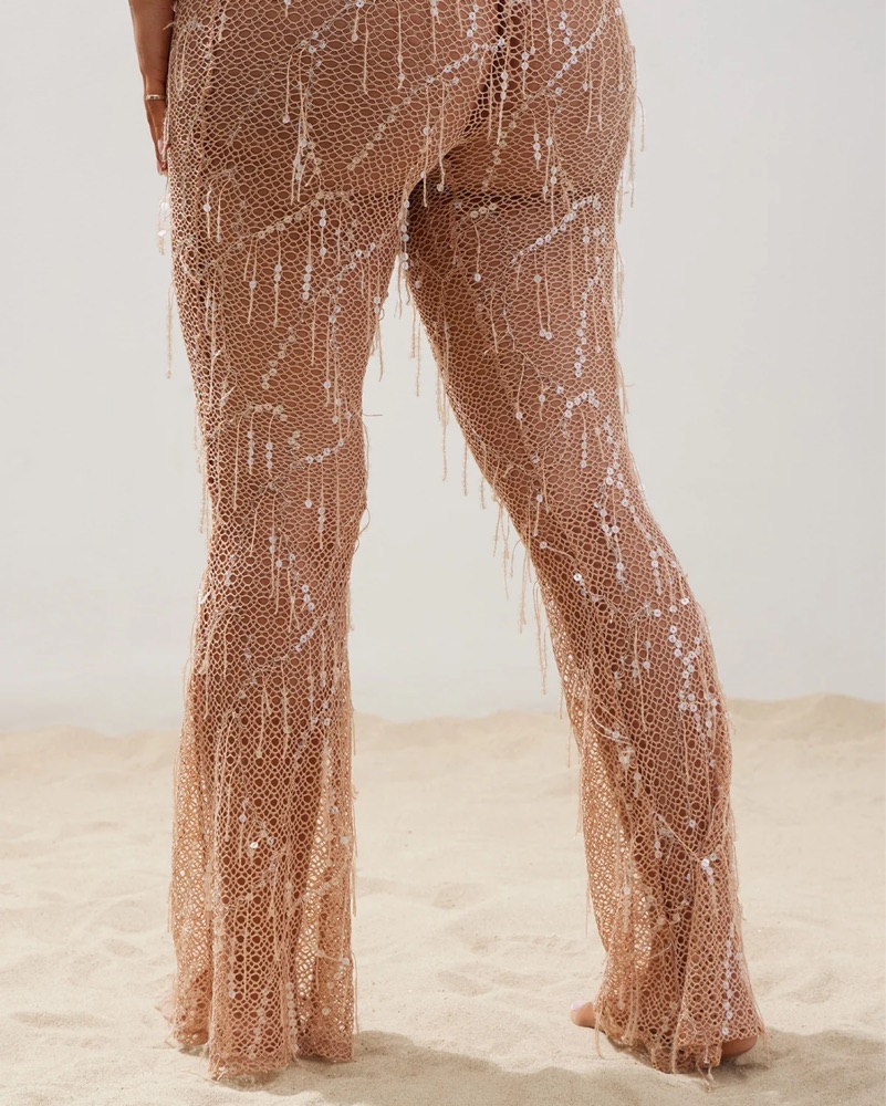 Sheer Sequin Cover Up Pants Fishnet by Fashion Nova - Pickle