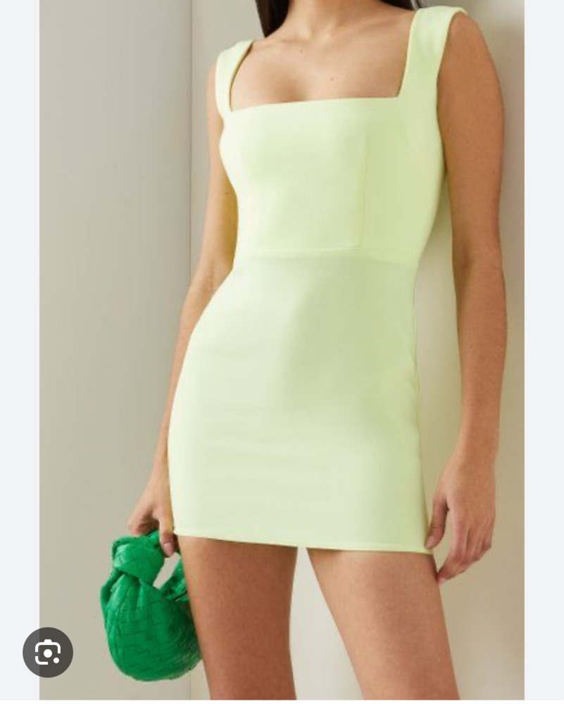 This vibrant highlighter yellow mini dress is perfect for a night out or a special event. The sleek, form-fitting silhouette and square neckline create a stylish and elegant look. Alex Perry crepe fabric is luxurious and fits like a glove! Au8/US4