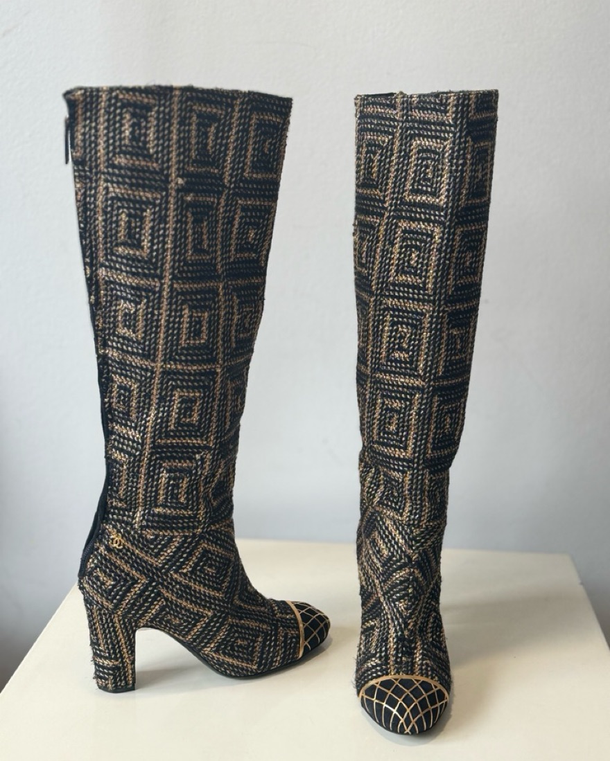 CHANEL Gold Tweed Byzantine Runway Boots