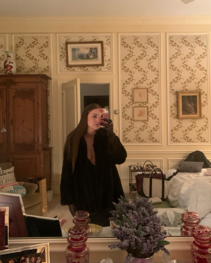 vintage brown fur jacket. the length hits on my upper thigh. it doesnt have a marked size but im normally a medium