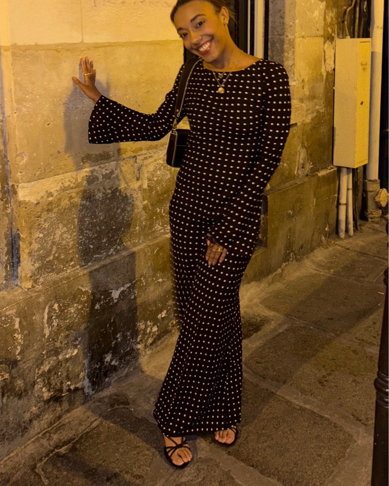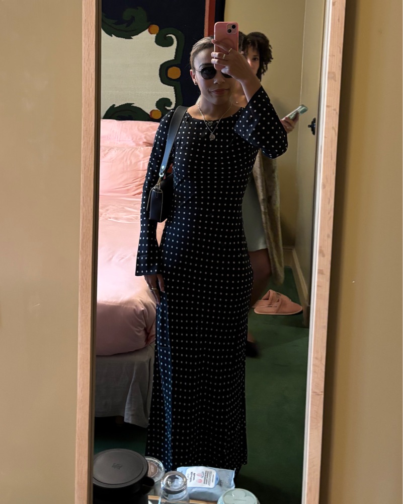 Black and white polka dot maxi dress
