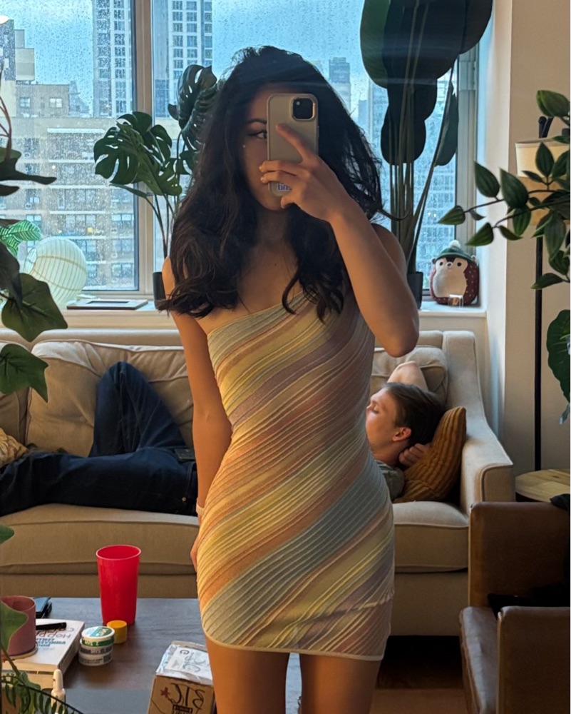 Pastel striped one shoulder bodycon mini dress. Fabric is slightly sheer, has a slight shimmer. Perfect for going out in Miami or Greece! Fits true to size, fabric has very little stretch.