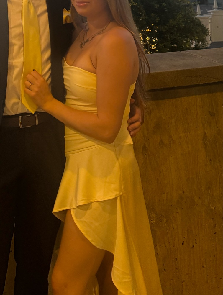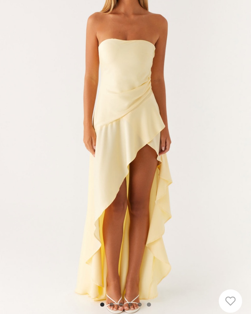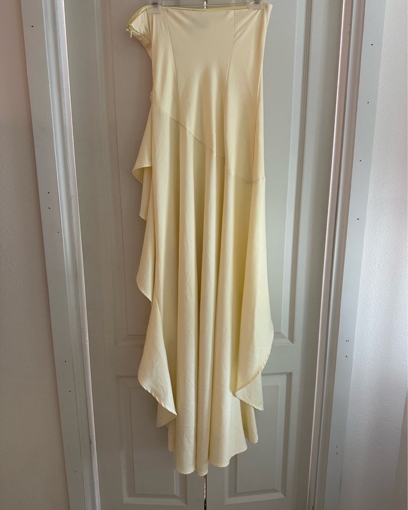 Pastel yellow, worn 2 times, minor wear and tear