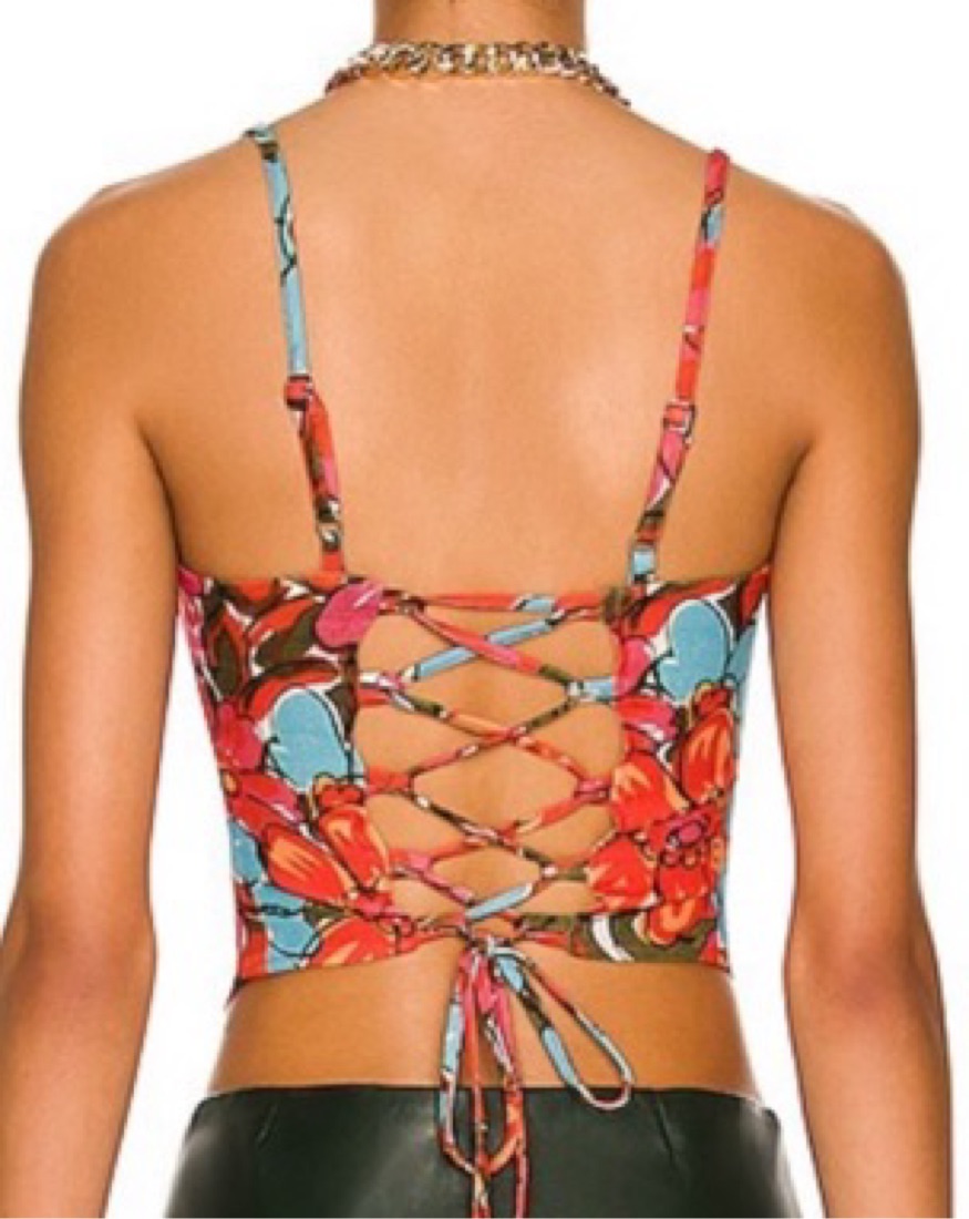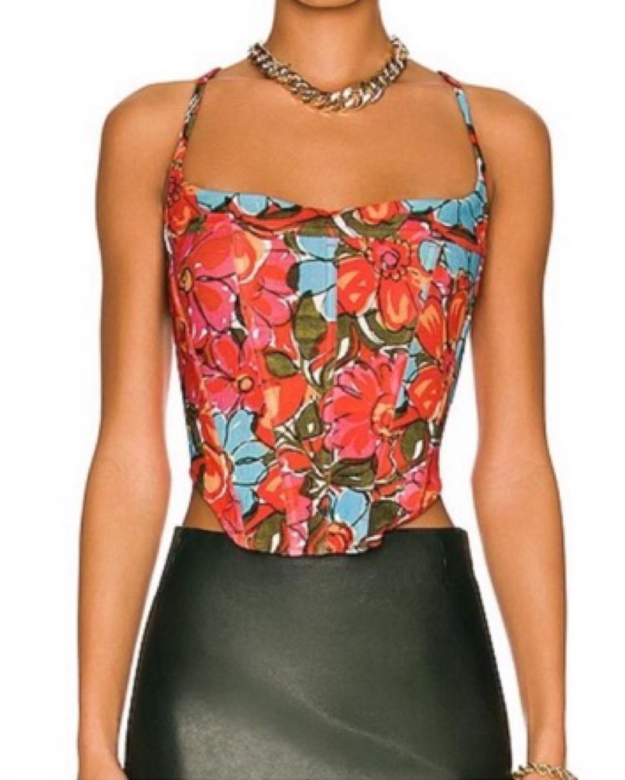 Parisian Floral Rouge top. Adjustable straps and coraet string back. Excellent condtion- like new. Worn once!