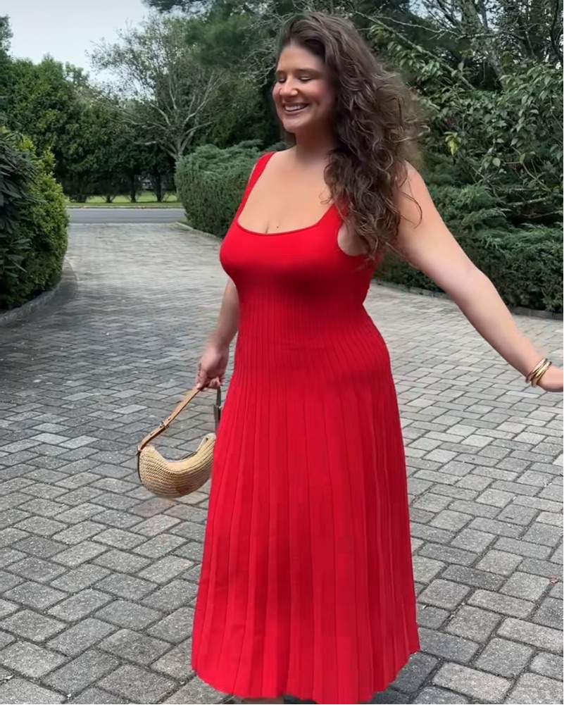 This stylish red dress is perfect for a night out on the town. The pleated design and form-fitting silhouette create a flattering and elegant look.