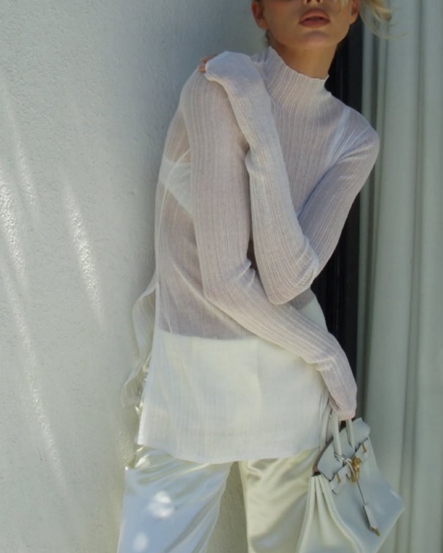 helsa casual sheer long sleeve top - justin knit top in optic white