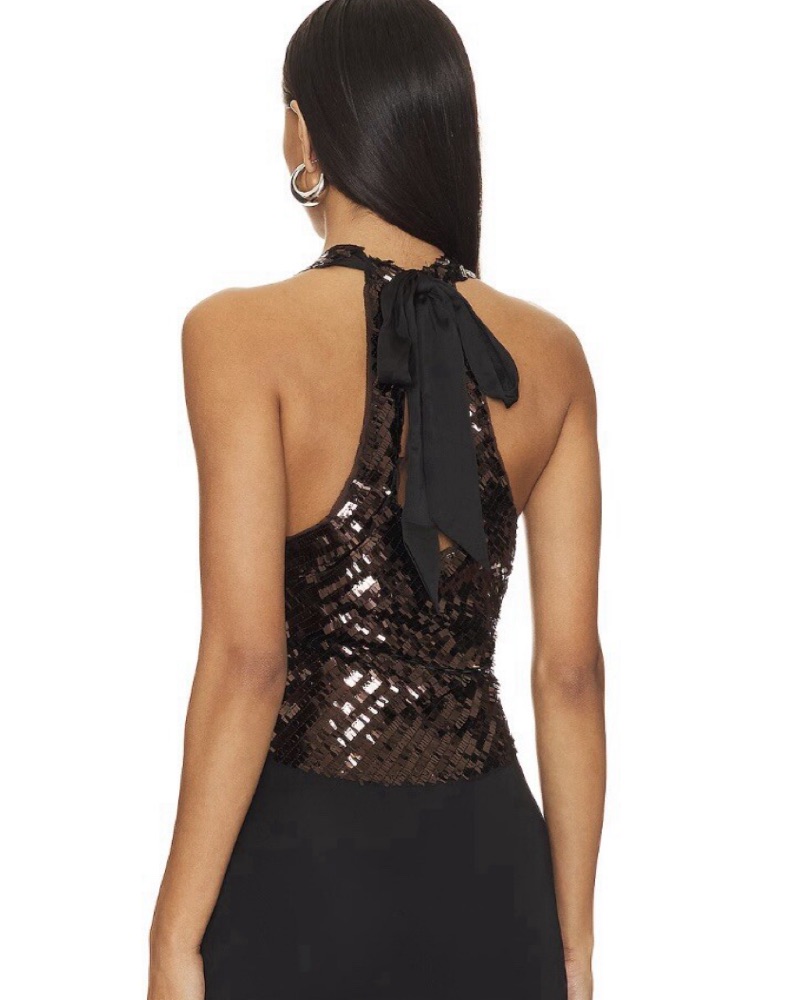 Free People Black Disco Fever Halter Top