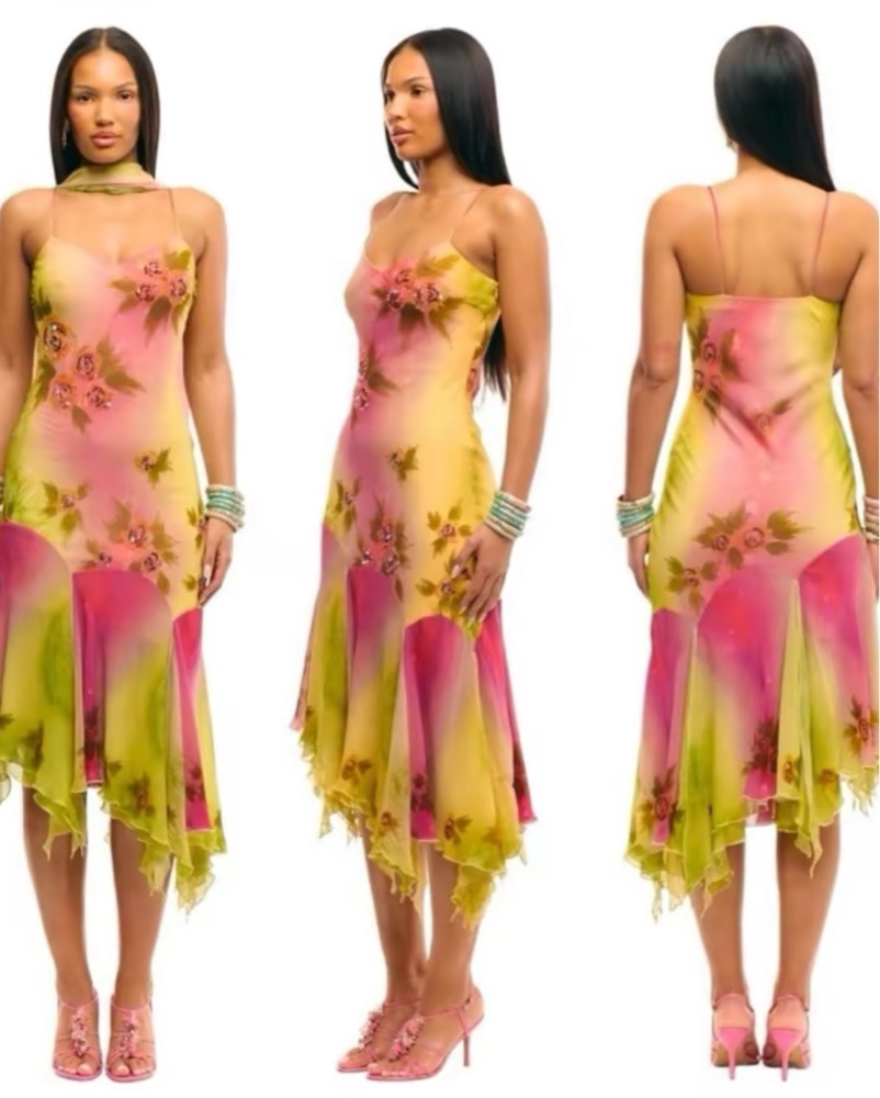 Embroidered Floral Print Dress