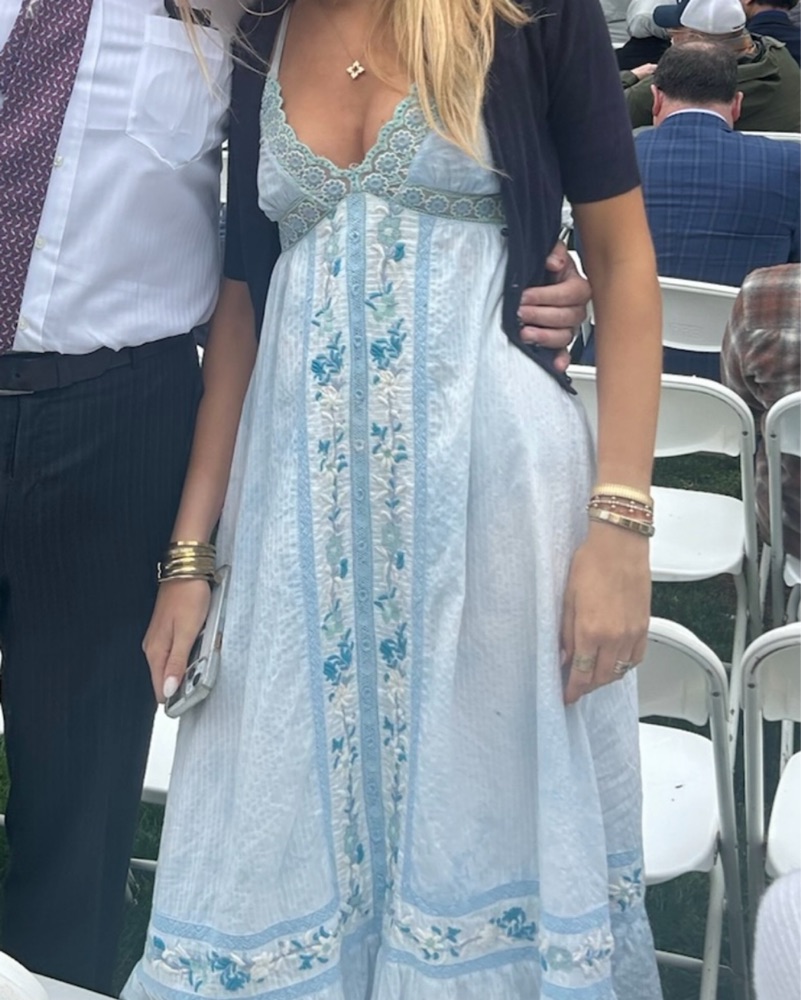 Gorgeous blue hand-embroidered maxi sun dress, super flattering and perfect for spring and summer! Size 2, fits like a small/xs! Worn twice but freshly dry cleaned. Bought for $646