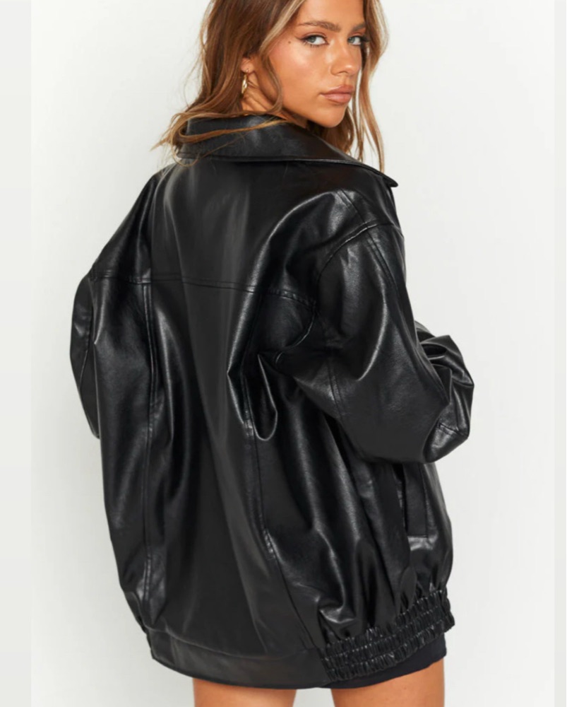 Oversized Leather Jacket by Beginning Boutique - Pickle