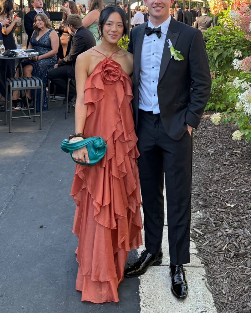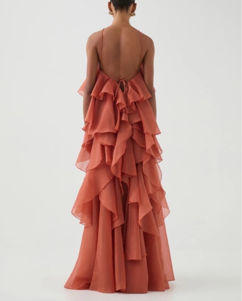 Aje Pandorea Layered Dress in Coral Clay Size US 2. The dress is flexible with sizing and could fit 0-4 (XS-S) and a wide range of height. I’m 5’2 and wore very tall platform heels to fit the length. Please take care of the hem if you are attending an outdoor event!