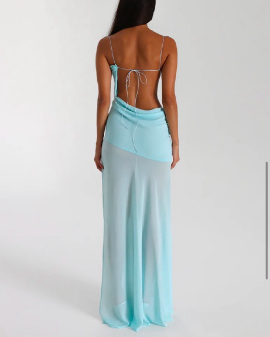 Gorgeous blue dress for any vacation or special event! I paired it with seashell accessories and I felt legit like a mermaid. Got so many compliments on this! I did get it hemmed on the bottom. I am 5’3 wearing heels and it was still hitting the ground. Worn once