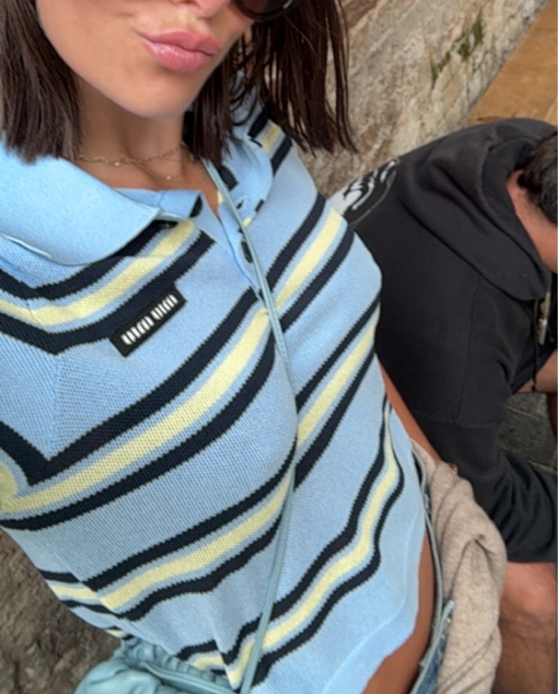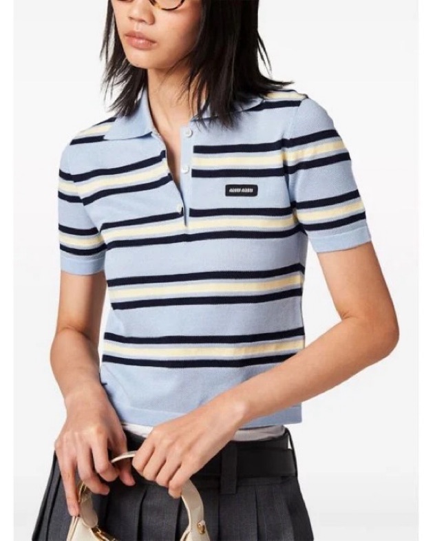 Mui Mui Striped Polo by Mui Mui - Pickle