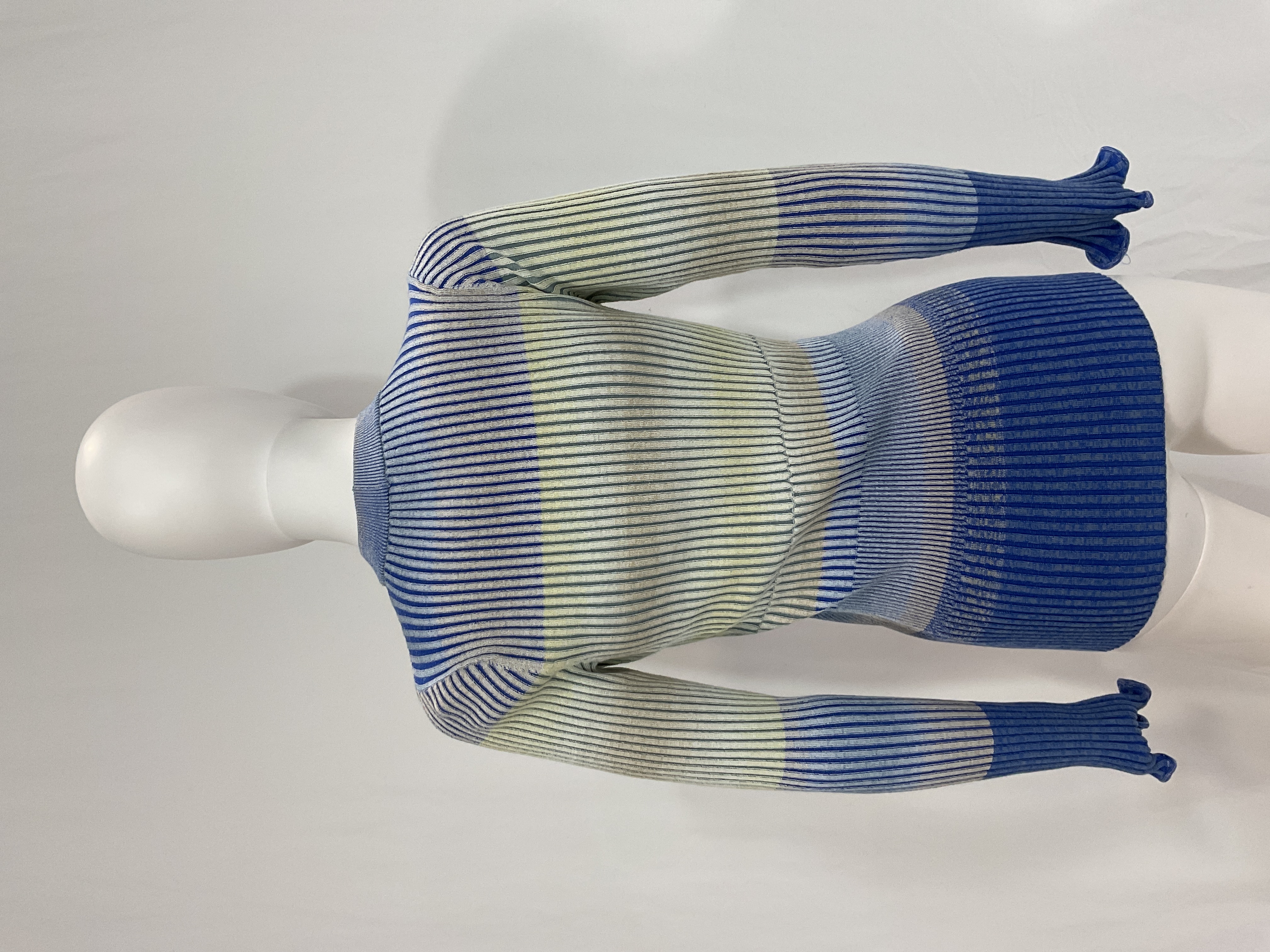 Cozy ribbed texture meets eye-catching space-dye pattern. Perfect for layering or wearing solo on cool days.