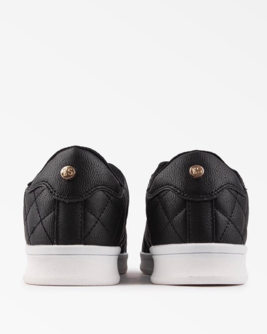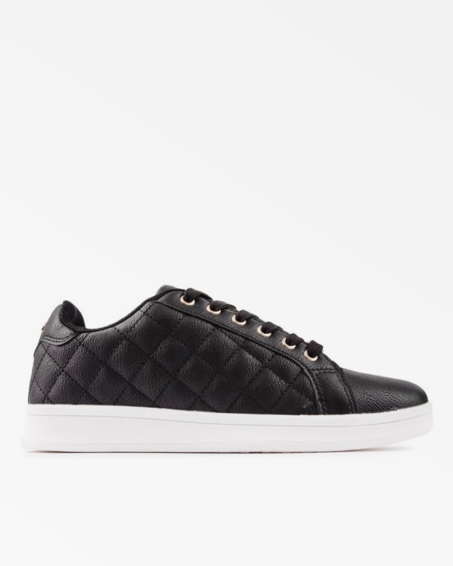 Black quilted faux leather sneakers with gold detail. Brand new, never worn.